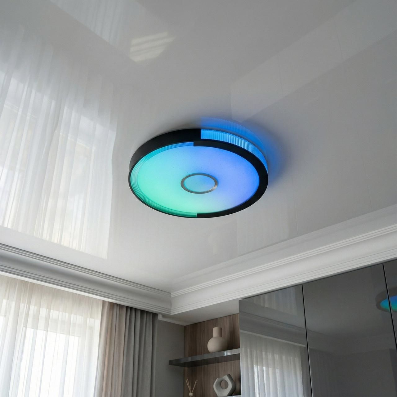 Потолочный смарт-светильник 70W RGB — это сочетание высокой мощности и современных технологий. Черный ободок добавляет стильный акцент, а RGB-модуль с управлением через I-LINK делает освещение частью вашего настроения.
