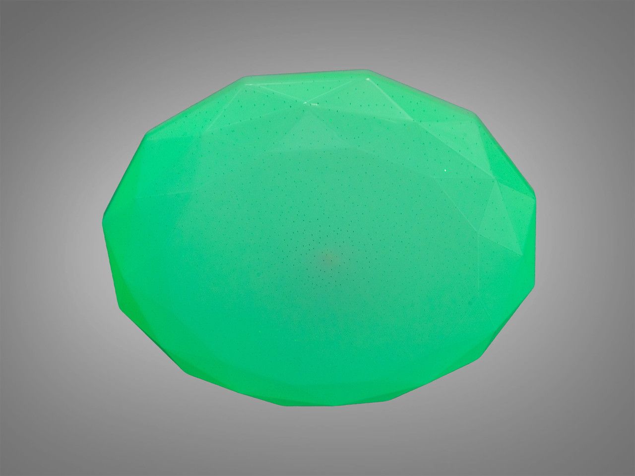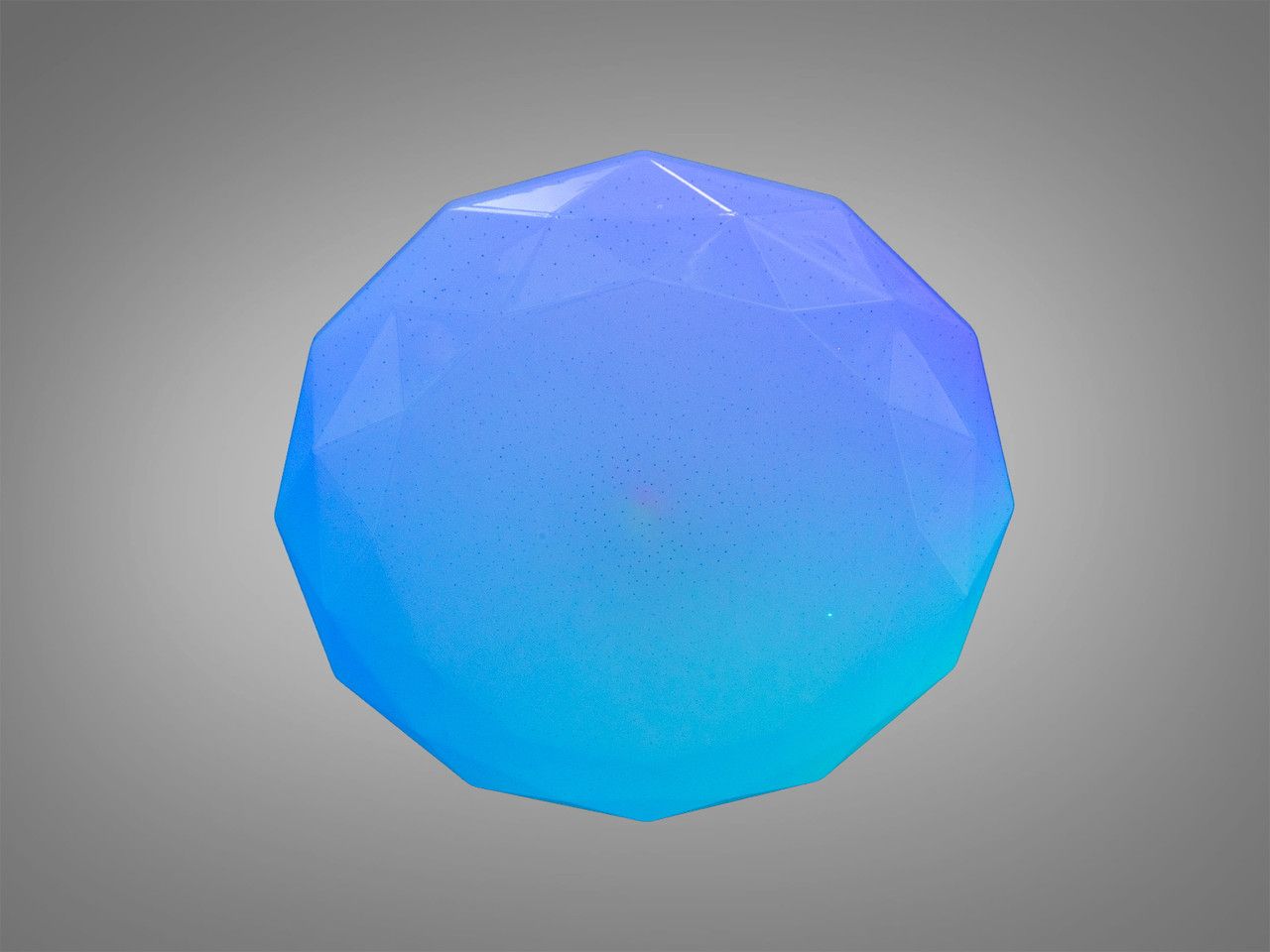 Модель выполнена в форме диска диаметром 39 см с ультратонким профилем (6.5 см). Основной плафон изготовлен из высококачественного акрила с микроперфорацией, которая при включении имитирует мерцание звезд. Ключевой особенностью дизайна является широкий текстурированный ободок «хрустальная грань»: он преломляет лучи диодов, создавая объемные блики на потолке. Белый матовый корпус визуально сливается с поверхностью, делая конструкцию легкой и технологичной.