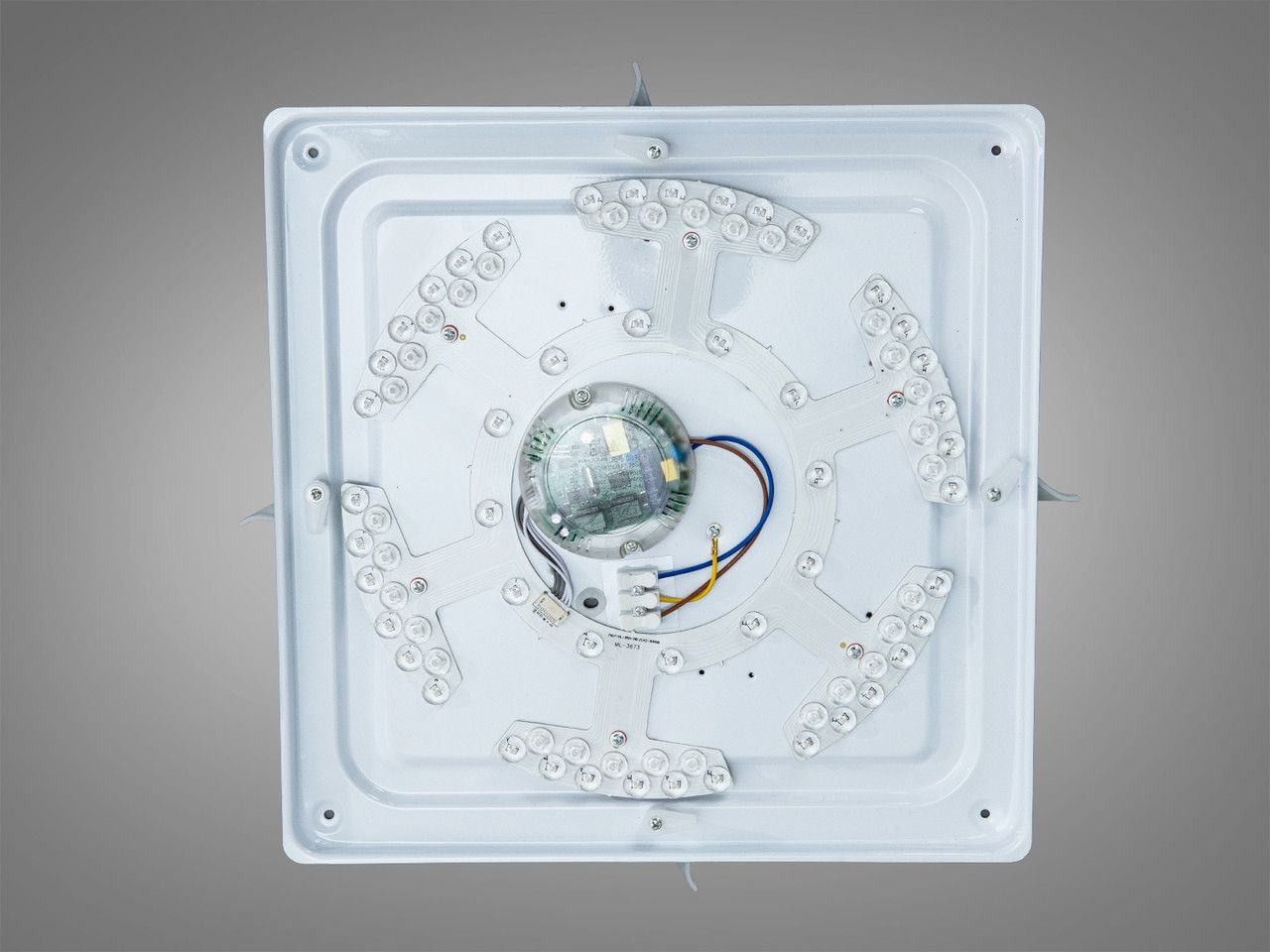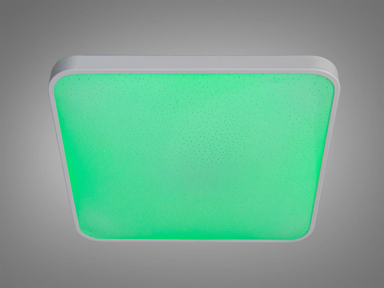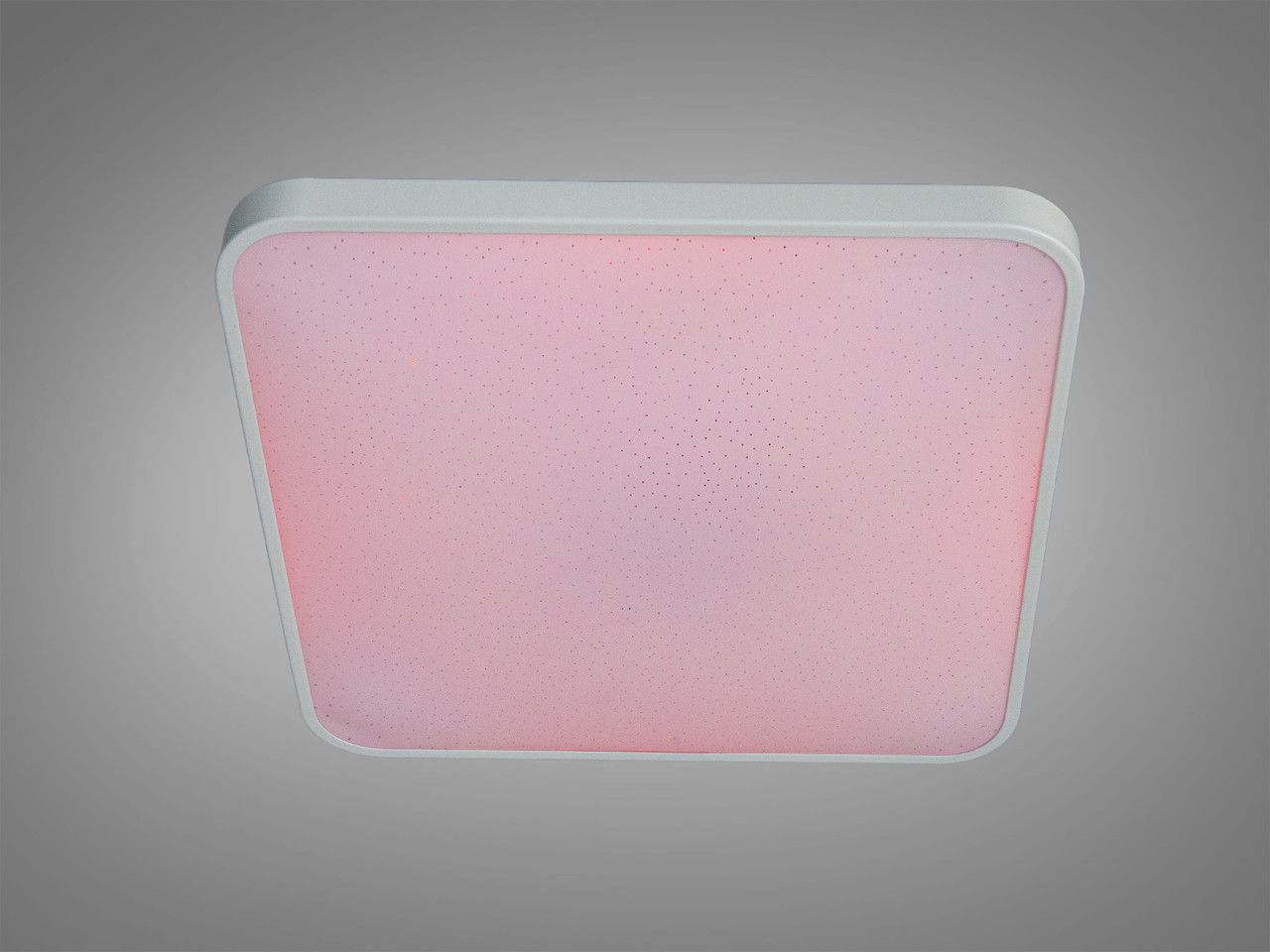 Дизайн модели базируется на лаконичной квадратной форме (38х38 см) с мягко закругленными углами. Корпус изготовлен из металла, что обеспечивает эффективный отвод тепла от светодиодов. Плафон из оптического акрила равномерно рассеивает свет, скрывая внутренние элементы. При активации RGB-режимов поверхность плафона заполняется чистыми цветовыми градиентами, создавая современный визуальный акцент в интерьере.