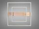 Модель выполнена в стиле геометрического минимализма с акцентом на премиальные материалы. Конструкция состоит из двух световых квадратов разного размера, вложенных один в другой, что создает эффект объемной светящейся рамы. Корпус изготовлен из металла с качественным гальваническим покрытием «золото», обеспечивающим безупречный зеркальный блеск. Рассеиватели из высококачественного акрила обеспечивают равномерную заливку светом без резких теней.