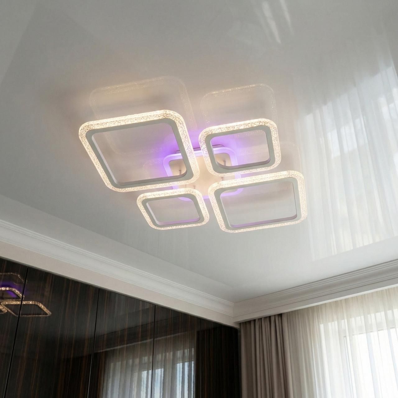 Светодиодная смарт-люстра 67W "Геометрия" с пультом и подсветкой, Белая (68х52 см)