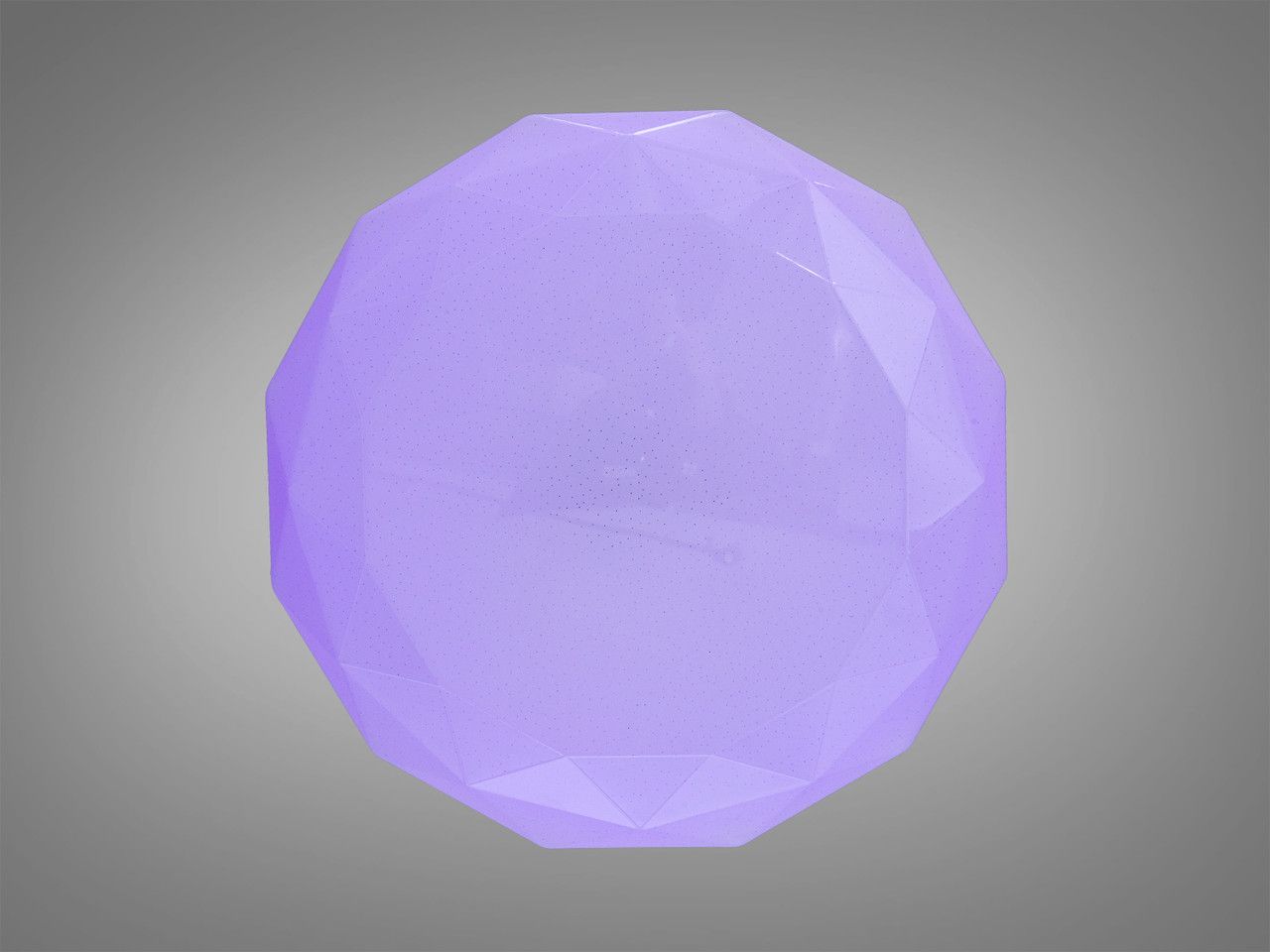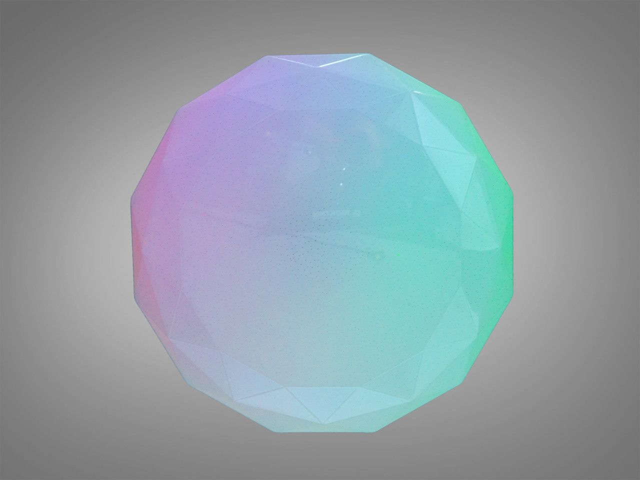 Модель выполнена в форме объемного многогранника диаметром 49 см. Плафон изготовлен из высококачественного оптического акрила с текстурой, имитирующей огранку драгоценных камней. При включении грани преломляют свет, создавая роскошные блики на потолке и стенах. Дополнительная микроперфорация создает эффект «звездного неба», а интегрированная RGB-подсветка позволяет плафону переливаться всеми цветами радуги с плавными градиентными переходами.
