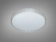 Модель выполнена в форме диска диаметром 40 см. Ключевой особенностью дизайна является широкий текстурированный край, имитирующий россыпь мелких кристаллов. При включении эти грани преломляют лучи, создавая сверкающий ореол вокруг прибора. Центральная часть плафона дополнена микроперфорацией («звездное небо»), обеспечивающей уютное мерцание. Благодаря высоте всего 7 см, люстра выглядит интегрированной в потолок, не загромождая пространство.