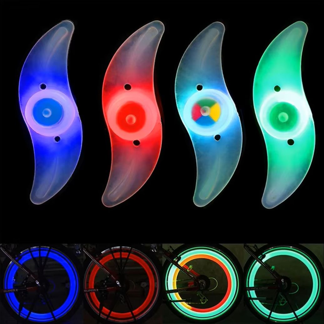 - При вращении колеса создаётся динамичный световой эффект, который не только улучшает видимость, но и придаёт велосипеду стильный внешний вид.