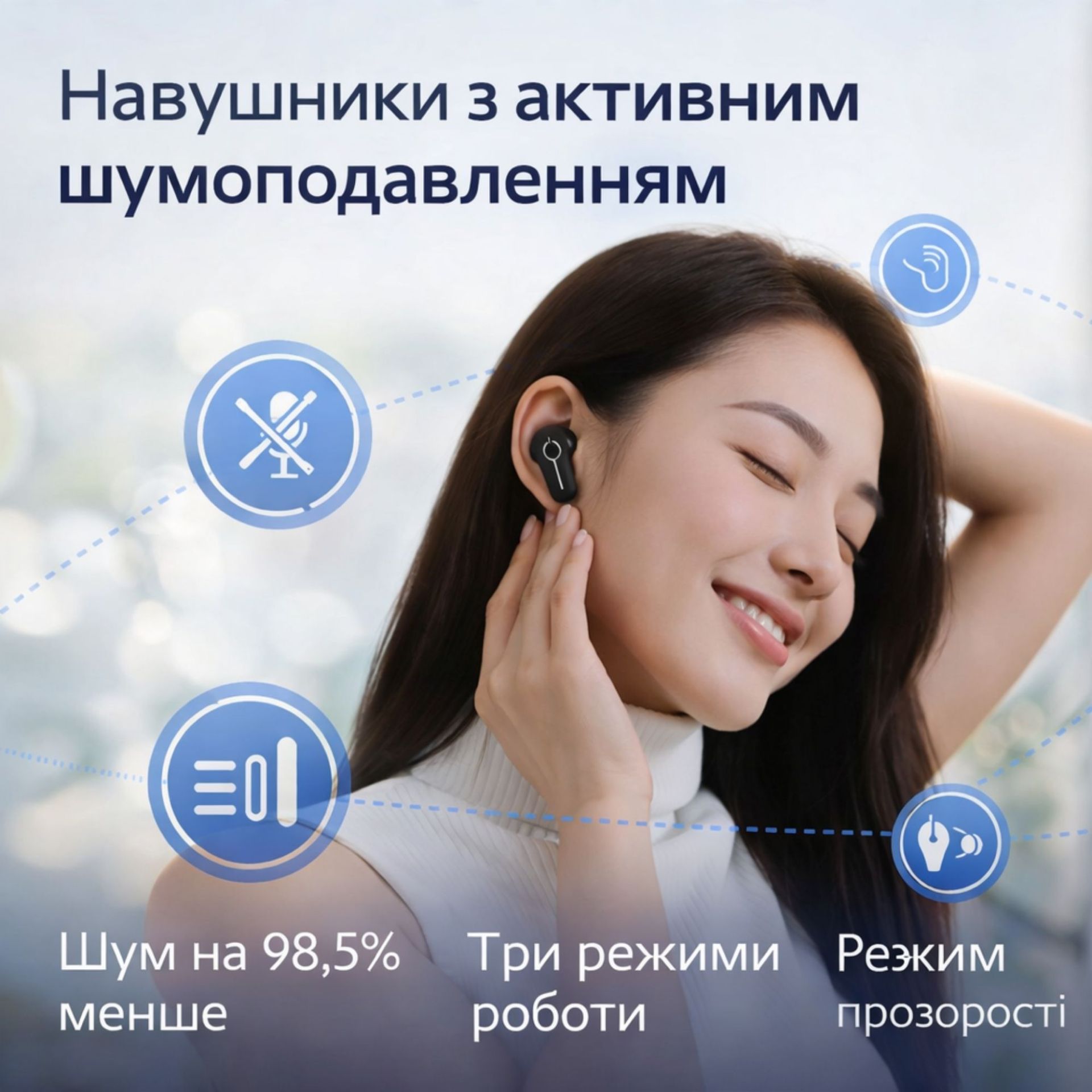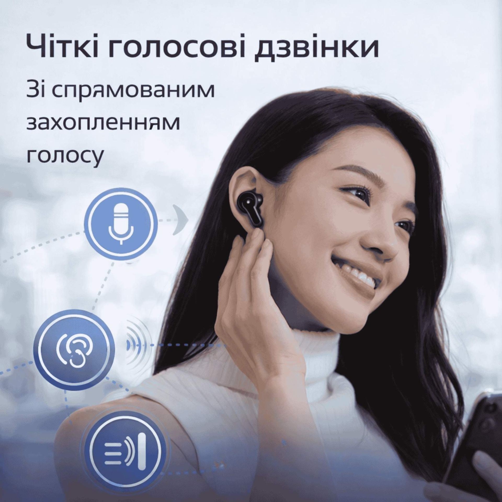 Модель оснащена 4 микрофонами с AI шумоподавлением, что гарантирует четкую передачу голоса во время вызова. Глубина шумоподавления до -42 dB эффективно снижает шум транспорта, улицы или офиса.