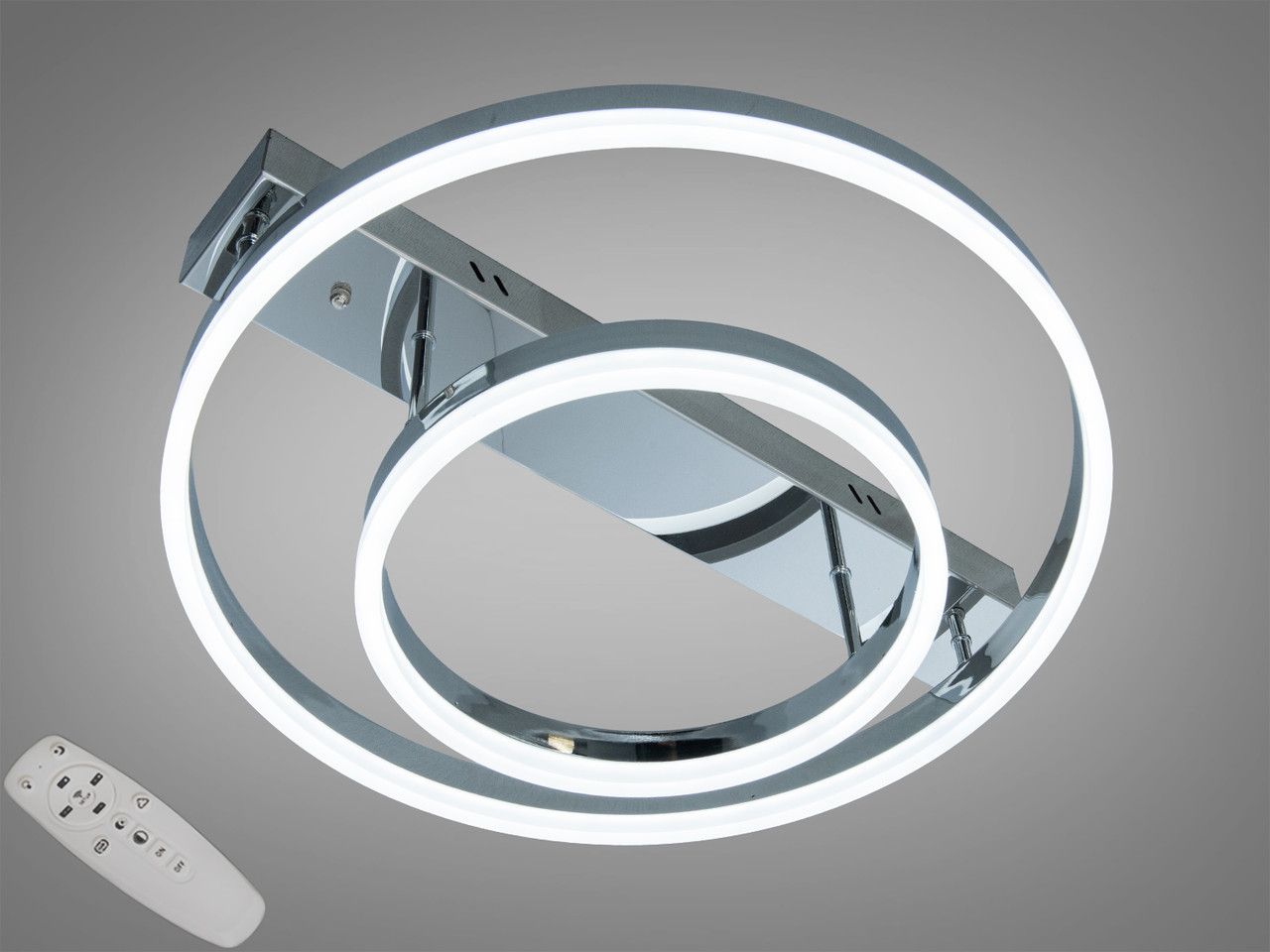 Светодиодная смарт-люстра 60W "Двойное Кольцо" с пультом, Хром (52 см)