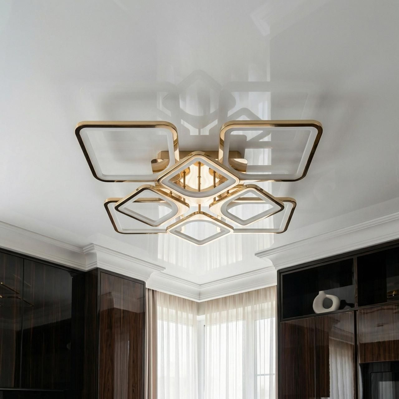 Светодиодная смарт-люстра 135W "Геометрия" с пультом и диммером, Золото (60х60 см)