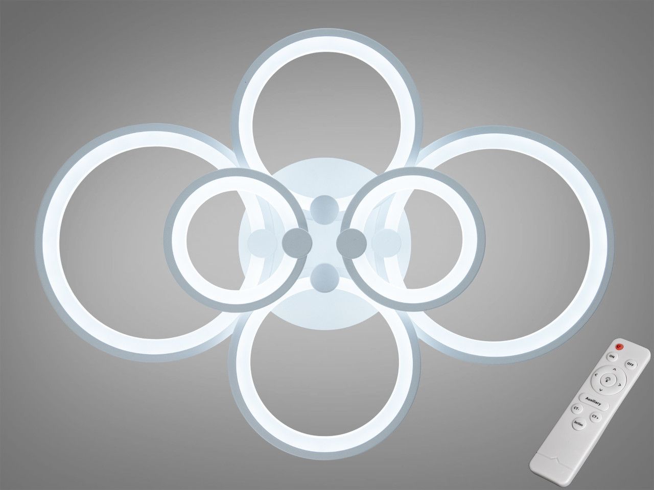 Светодиодная смарт-люстра 110W "Шесть колец" с пультом и диммером, Белая (80 см)