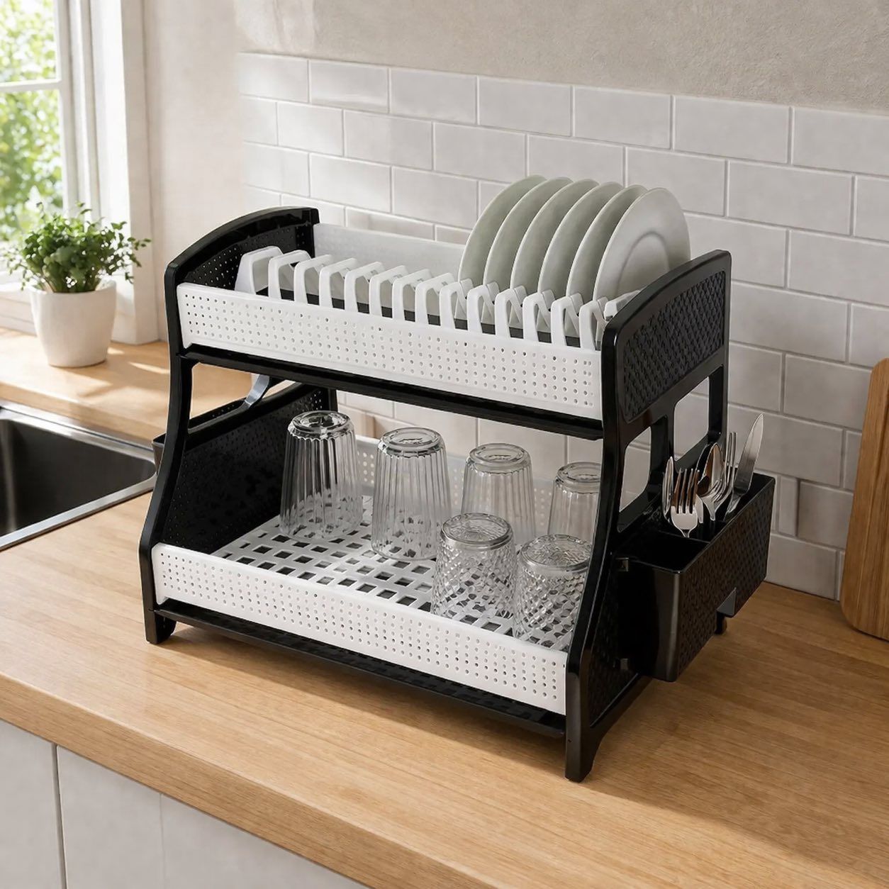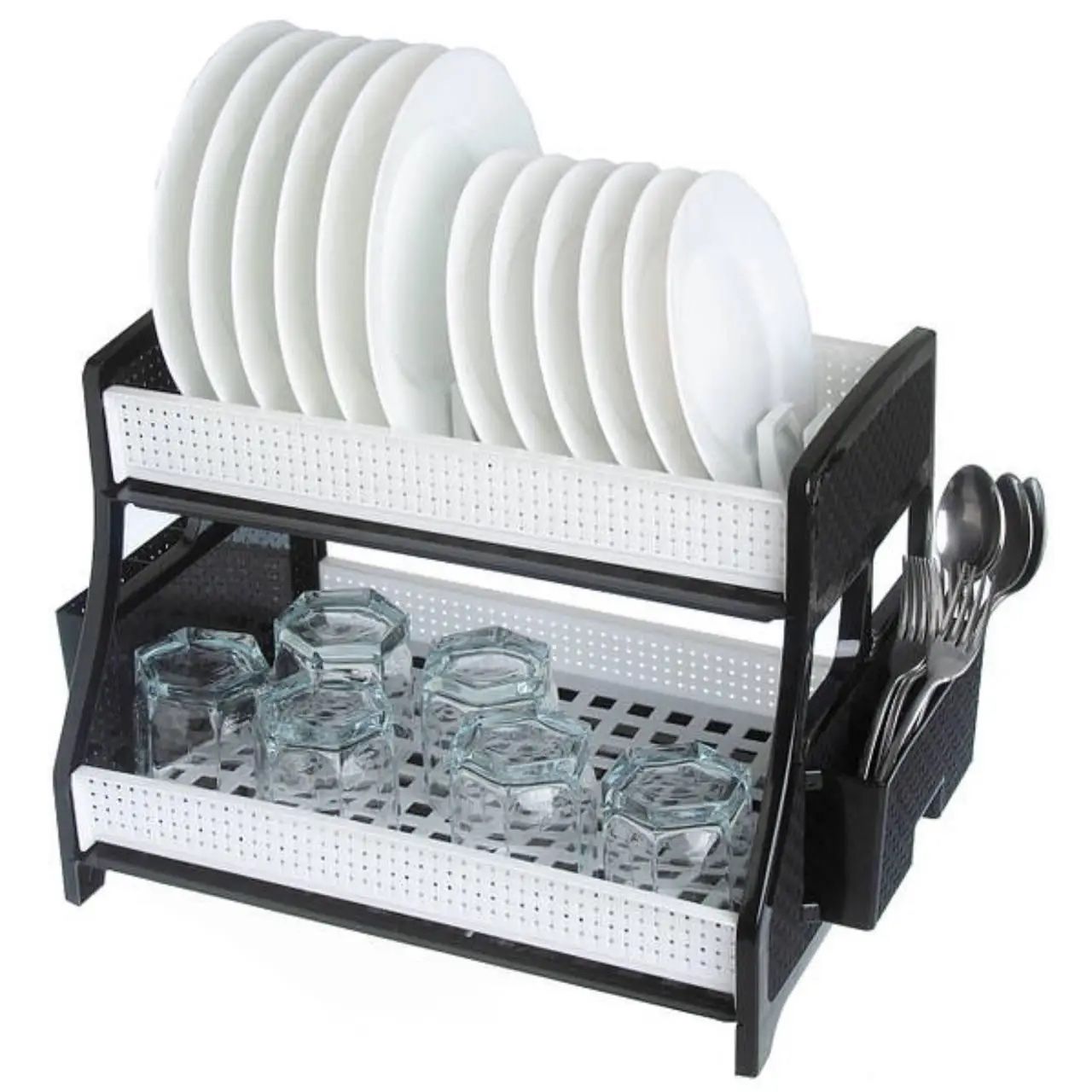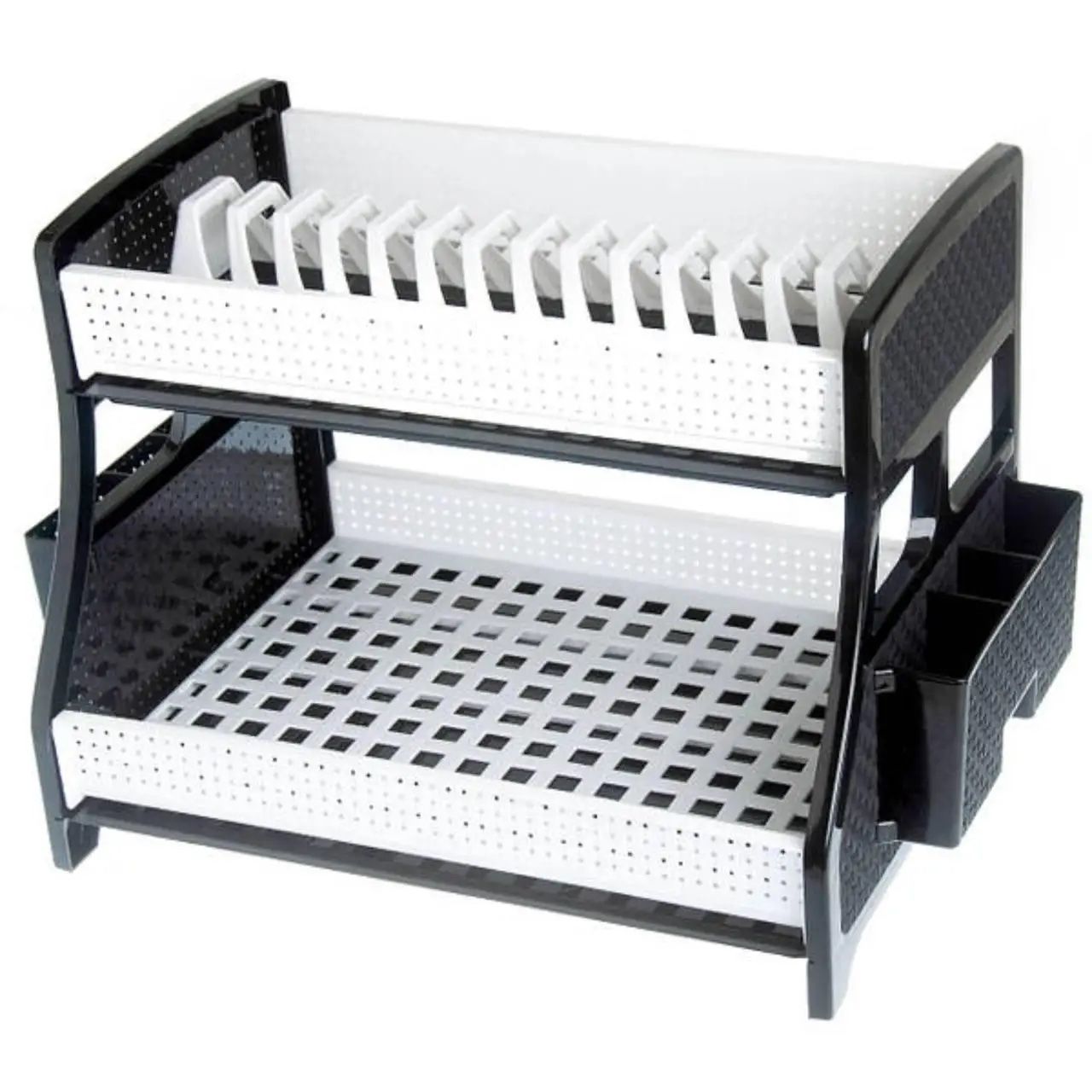 Сушилка для посуды двухъярусная с 2-мя поддонами черно-белая