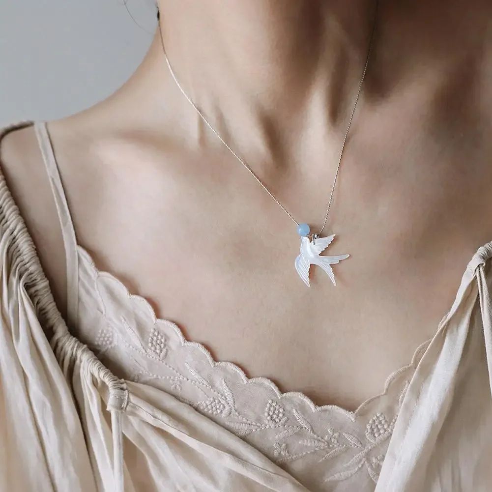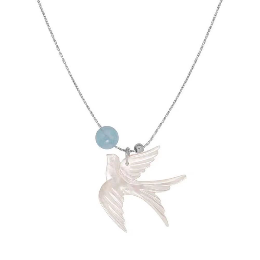 Подвеска птица ласточка кулон на нитке маленькое ожерелье летающая белая птица