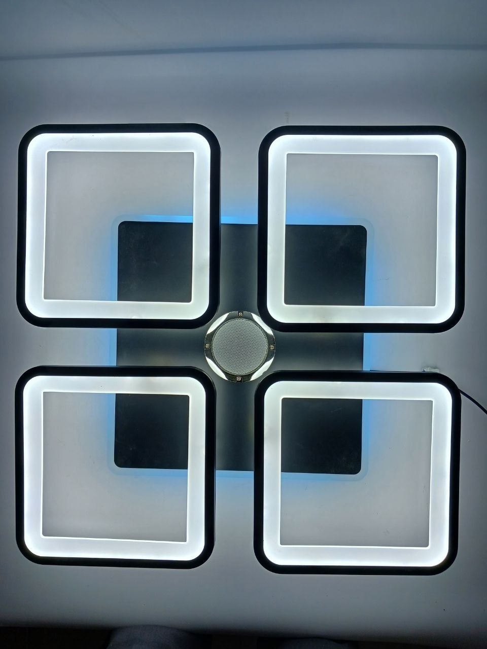 Люстра оснащена встроенной Bluetooth-колонкой, что позволяет наслаждаться музыкой прямо с вашего смартфона. Дополнительная RGB подсветка создает особую атмосферу, позволяя выбирать любые цветовые акценты. Система 3CCT дает возможность настроить температуру основного света (3000K/4000K/6500K) под ваши задачи. Управление всеми функциями максимально удобно благодаря комбинации инфракрасного пульта и мобильного приложения через Bluetooth.