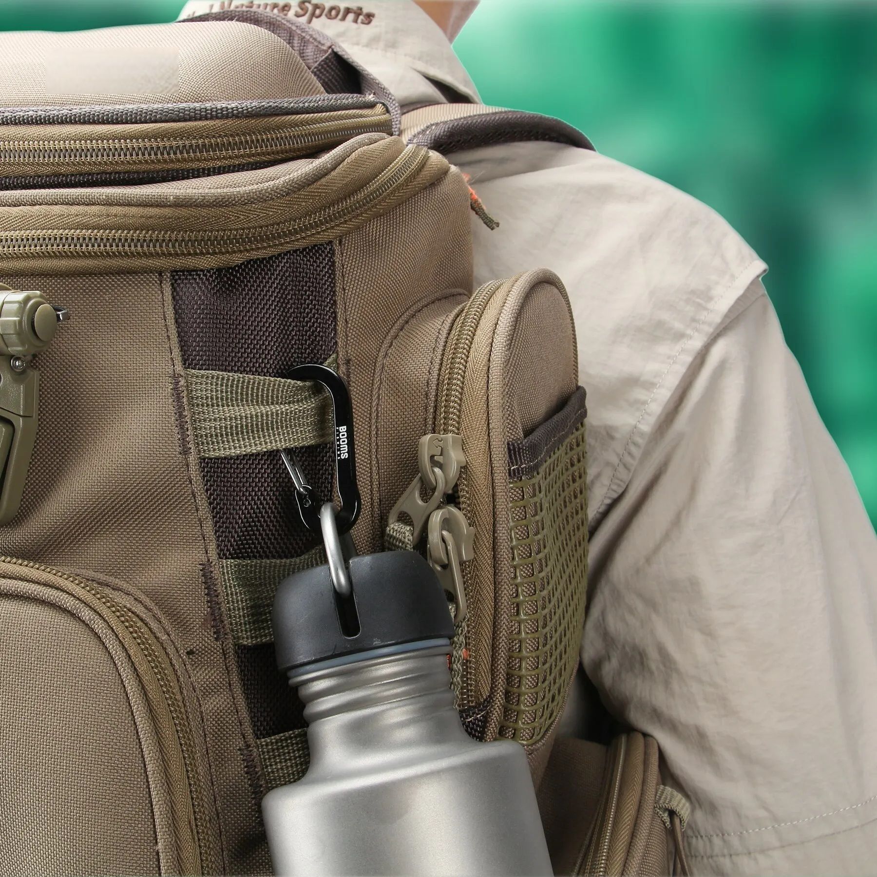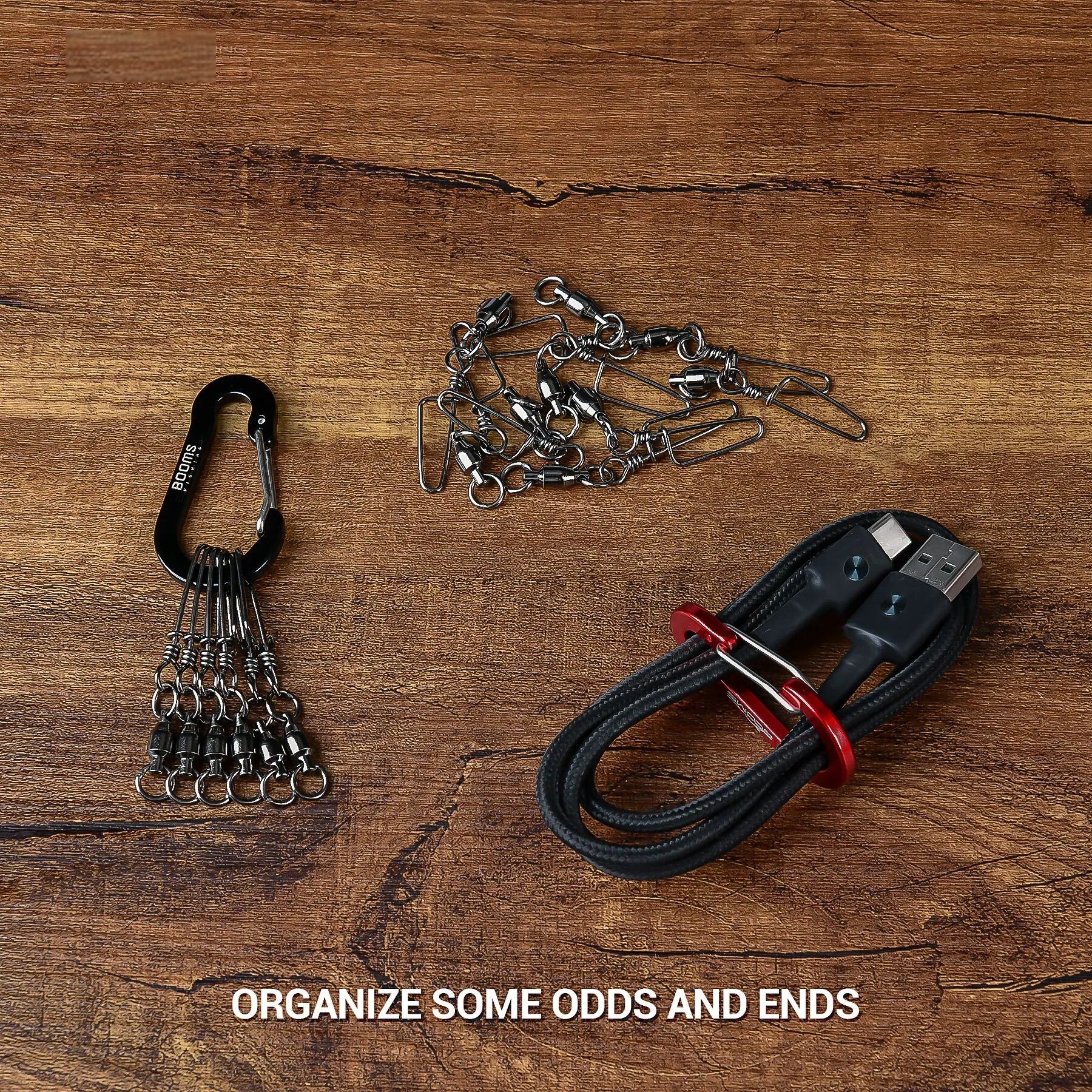 - Пружинный замок обеспечивает быстрое открытие и надёжную фиксацию, позволяя легко прикреплять и снимать предметы одной рукой.