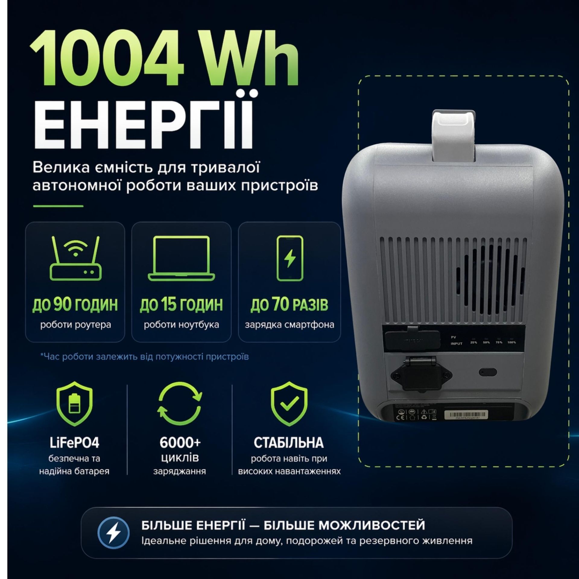 ✔ Емкость 1004 Wh - длительная автономная работа