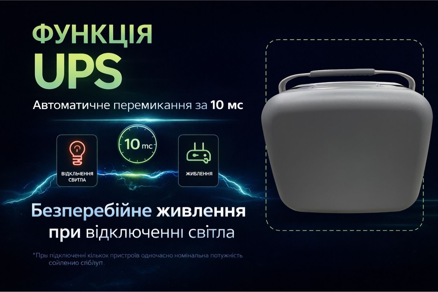 Функция UPS (бесперебойное питание) автоматически переключает питание всего за 10 мс, что позволяет оградить чувствительную технику от внезапного отключения электроэнергии и перепадов напряжения.