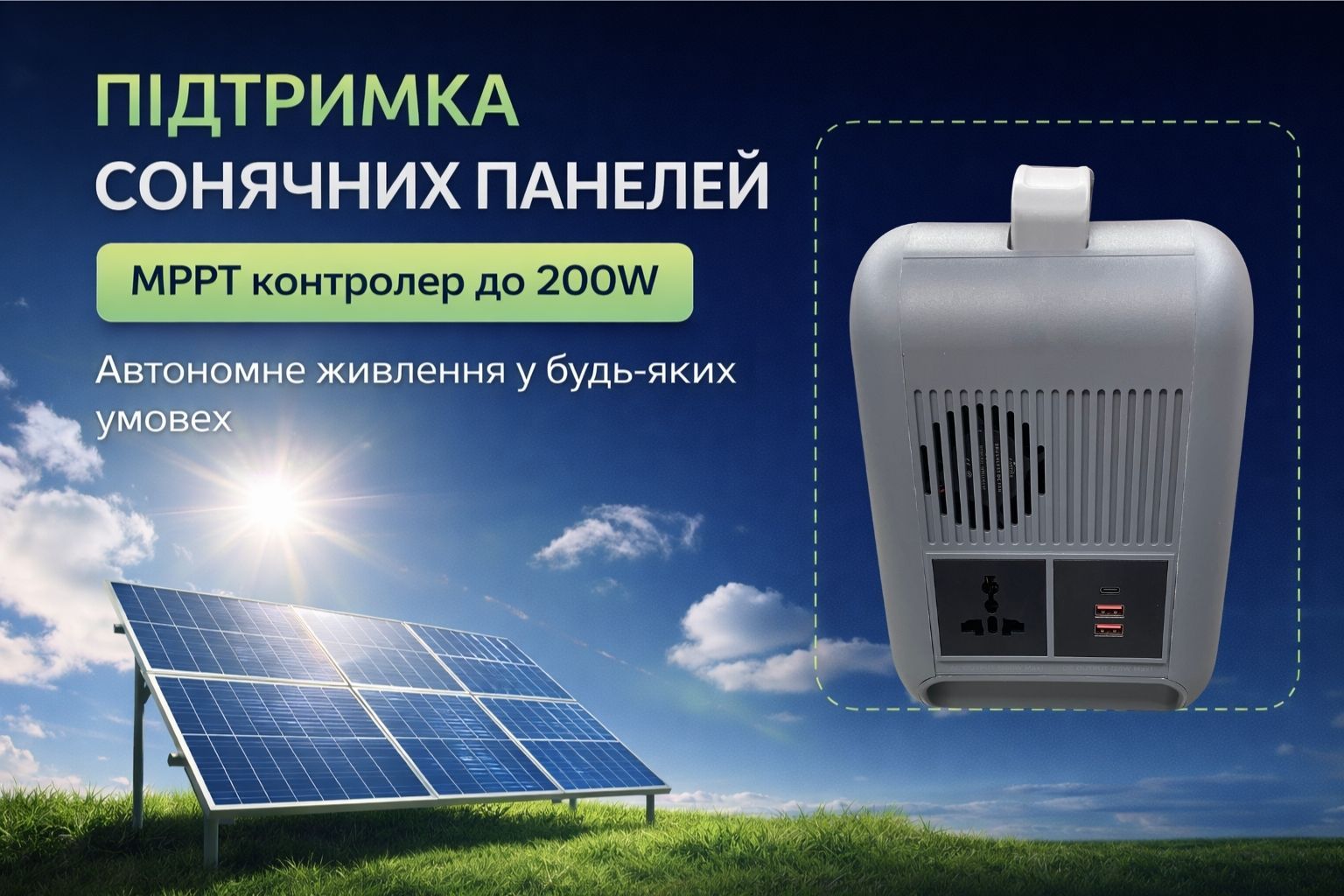 ✔ Поддержка солнечных панелей MPPT 200W