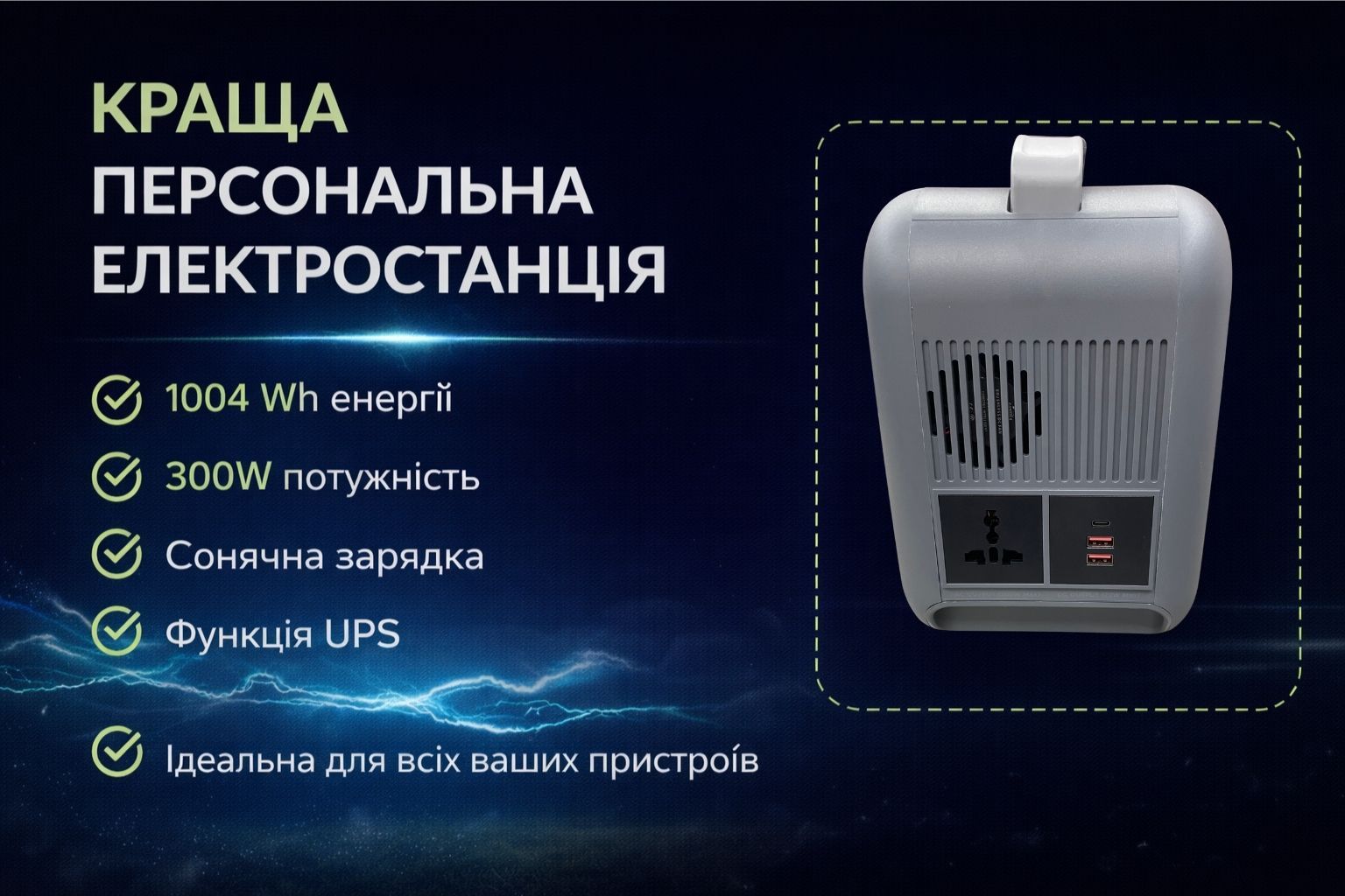 Зарядная станция eCandle 1000Wh (300W) LiFePO4 портативная электростанция с UPS, AC 220В, MPPT 200W
