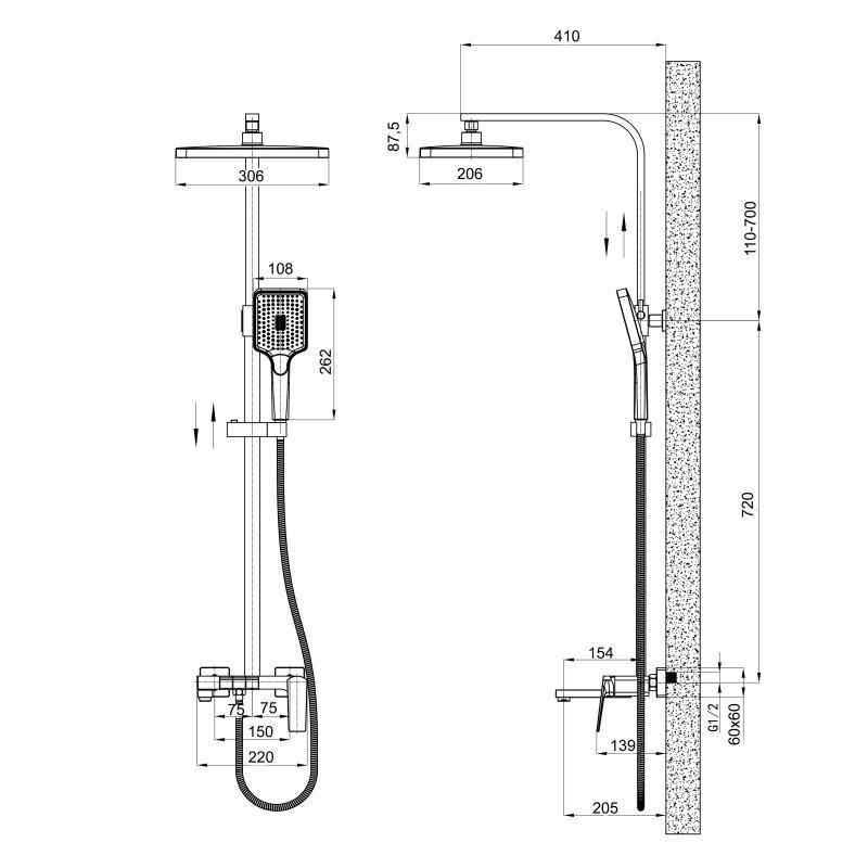 Длина кронштейна для верхнего душа, мм400