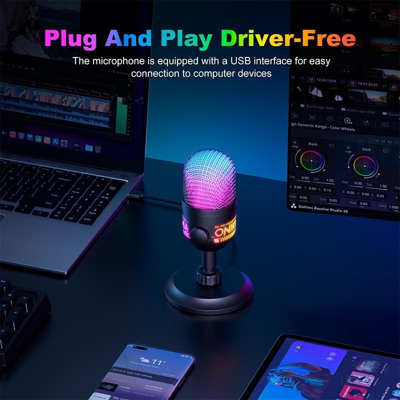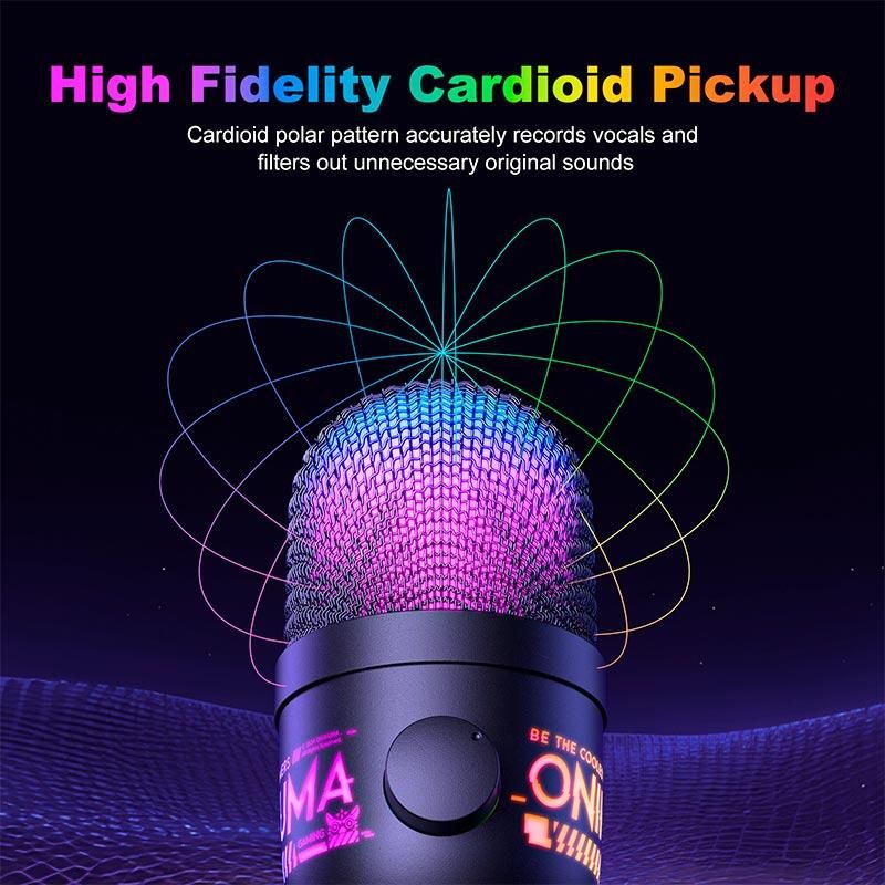 ONIKUMA M930 — это компактный и функциональный конденсаторный микрофон, разработанный для стриминга, онлайн-игр, подкастов, видеоконференций и записи голоса. Устройство сочетает в себе высокое качество звука, удобство управления и современный дизайн с RGB-подсветкой. Благодаря кардиоидной направленности этот микрофон точно улавливает голос пользователя и эффективно снижает уровень фоновых шумов, обеспечивая чистое и разборчивое звучание.