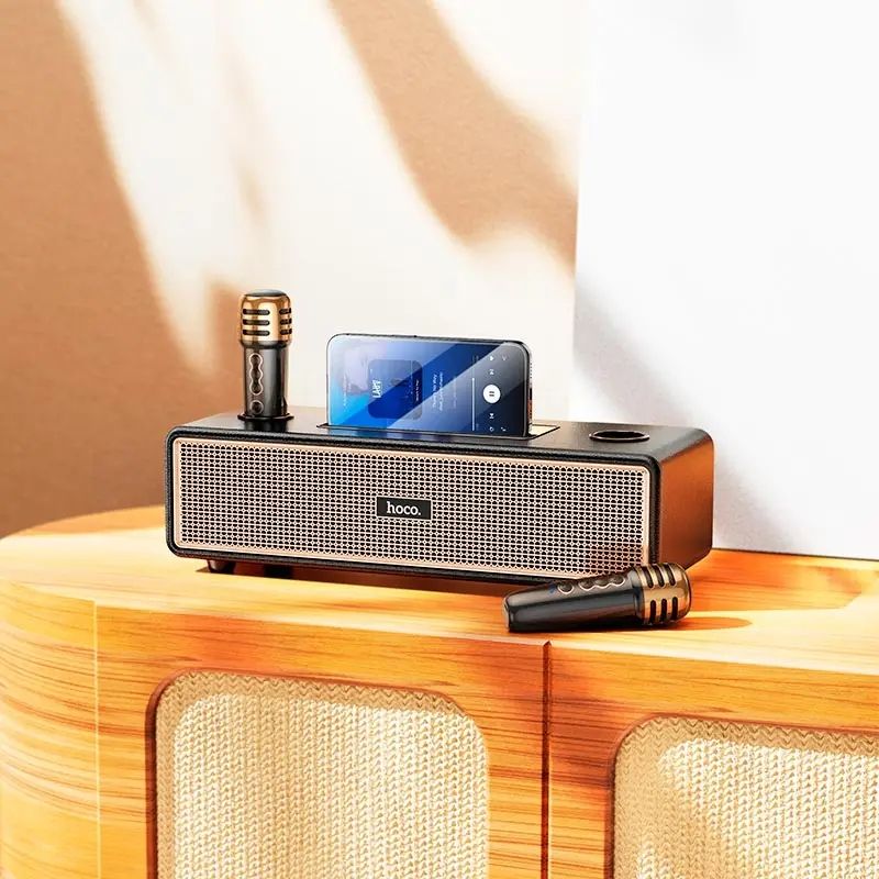 HOCO BS63 Graceful — это мощная портативная акустическая система с поддержкой караоке, выполненная в стильном ретро-дизайне. Эта колонка сочетает в себе качественный звук, универсальные способы подключения и удобство использования. Благодаря двум беспроводным микрофонам и поддержке функции TWS эта модель идеально подходит для вечеринок, семейных праздников, отдыха на природе и домашнего использования.