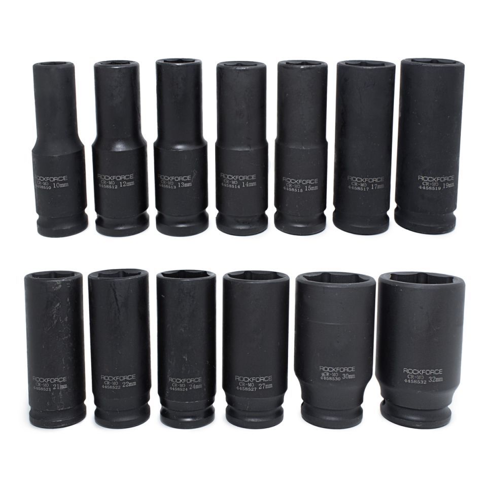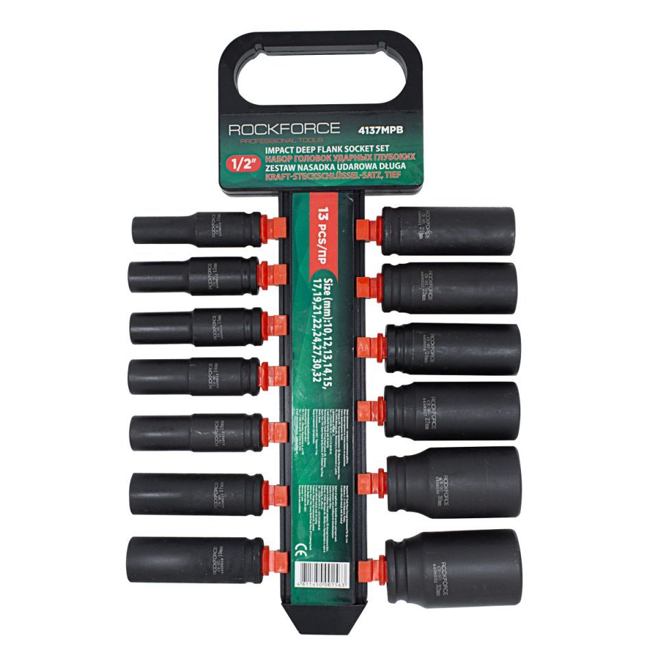 Набор головок ударных глубоких13пр.,1/2"(10, 12-15, 17, 19, 21, 22, 24, 27, 30, 32мм), на пластиковом держателе ROCKFORCE RF-4137MPB