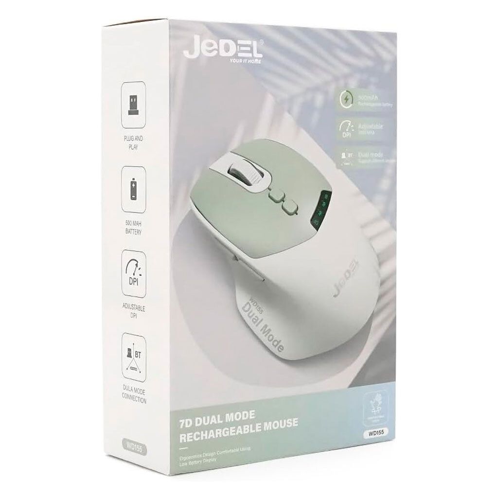 Беспроводная мышь Jedel WD155 — это современное и функциональное решение для комфортной работы, учебы и повседневного использования. Эта модель сочетает в себе эргономичный дизайн, тихие кнопки и удобное двойное подключение (Bluetooth и 2.4 ГГц через USB-ресивер), что позволяет легко переключаться между несколькими устройствами.