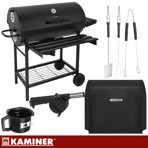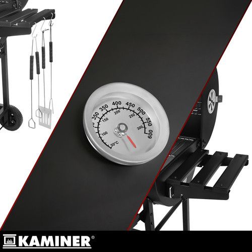 Садовый гриль KAMINER с крышкой и термометром — идеальный выбор для комфортного гриля дома, на даче или террасе. Большая площадь приготовления, полочки и дополнительные аксессуары обеспечивают максимальное удобство и контроль процесса.