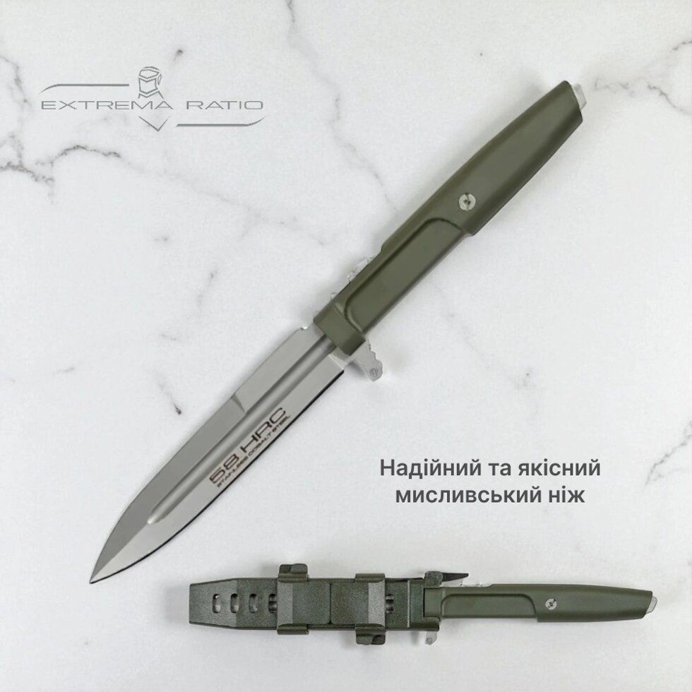 Нож Extrema Ratio создан для тех, кто ценит надежность в каждой детали. Сплошной хвостовик проходит через всю рукоятку, что обеспечивает дополнительную прочность и баланс. Рукоятка удобно лежит в руке и не скользит даже во влажных условиях. Влагалища из ударопрочного пластика очень удобны и надежно фиксируют нож. Идеальный выбор для поездок, выездов и активного отдыха.