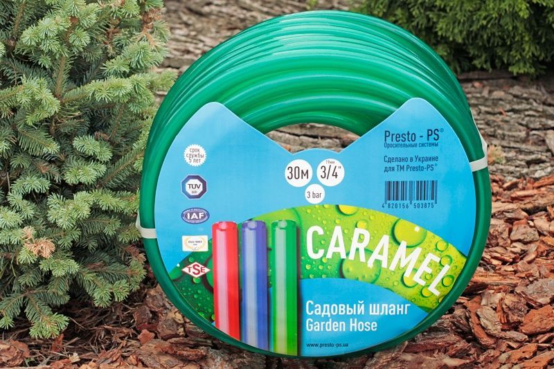 Одношарові шланги серії Caramel виготовлені на українському заводі, оснащеному високоякісним турецьким обладнанням. Відмінно зарекомендували себе співвідношенням своєї ціни та надійності. Вони міцні, еластичні, стійкі до впливу ультрафіолетового випромінювання, використовуються в широкому діапазоні робочих температур від + 60 до - 5 °C без зміни своїх первинних технічних характеристик. Відсутність у складі шкідливих хімічних домішок робить їх застосування екологічно безпечним.