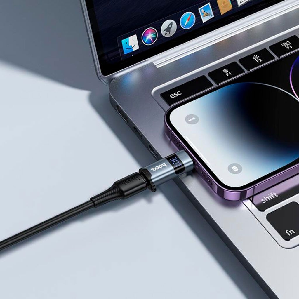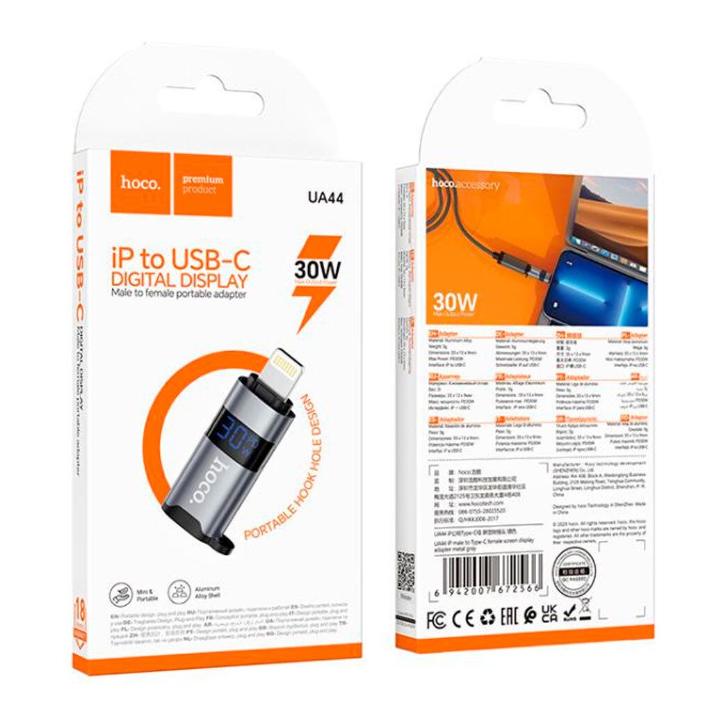 HOCO UA44 — это компактный и функциональный переходник, предназначенный для подключения кабелей USB - Type-C к устройствам с разъемом Lightning. Этот адаптер позволяет использовать современные кабели с разъемом Type-C для зарядки и синхронизации техники Apple, обеспечивая удобство и универсальность в повседневном использовании.