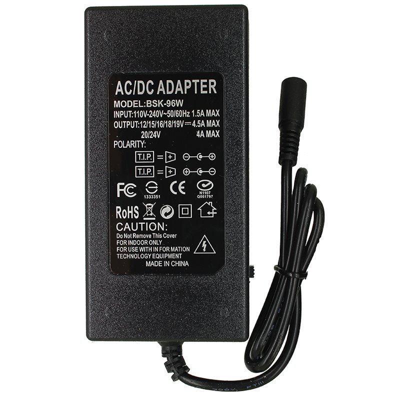 Блок питания для ноутбуков и мониторов BSK-96W с переходниками (8 шт) и регулировкой напряжения 12-24V/ 4-4.5A, EU 220V