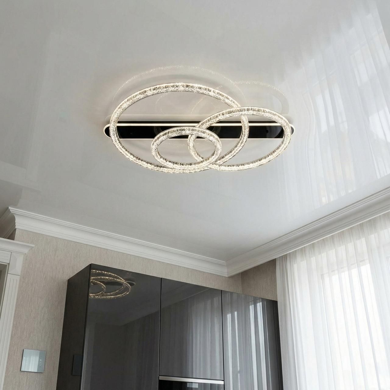 Светодиодная потолочная люстра Black Crystal Rings 165W - Черный - Пульт ДУ