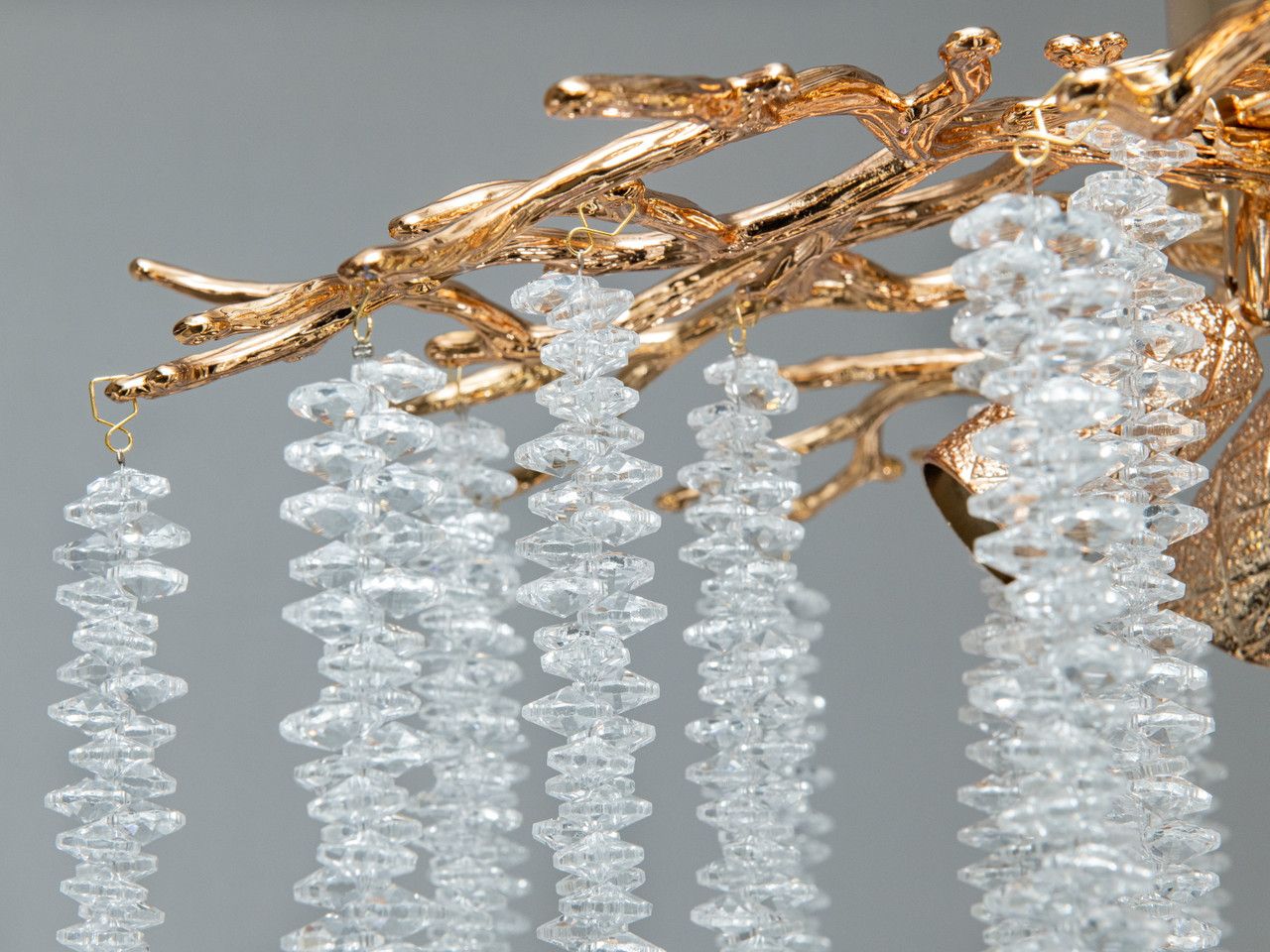 Необычная форма в виде цветущих ветвей превращает люстру в самостоятельный арт-объект. При включении света грани хрусталя наполняют комнату множеством бликов, подчеркивая статусность интерьера.