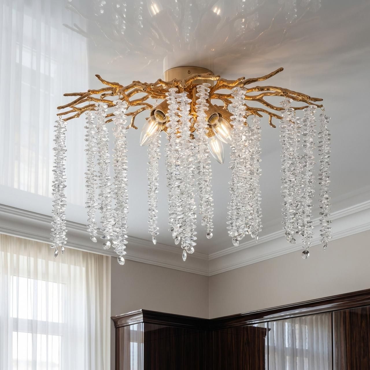 Уникальный дизайн: флористические мотивы в сочетании с хрусталем выделяют эту люстру среди стандартных моделей.