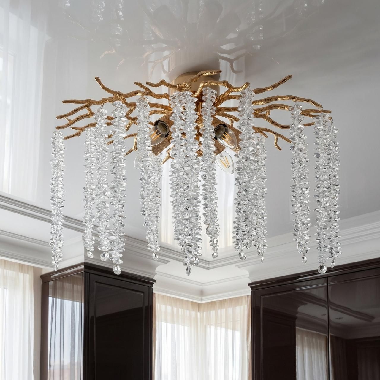 Потолочная каскадная люстра Глициния 5xE14 - Золото - Хрусталь