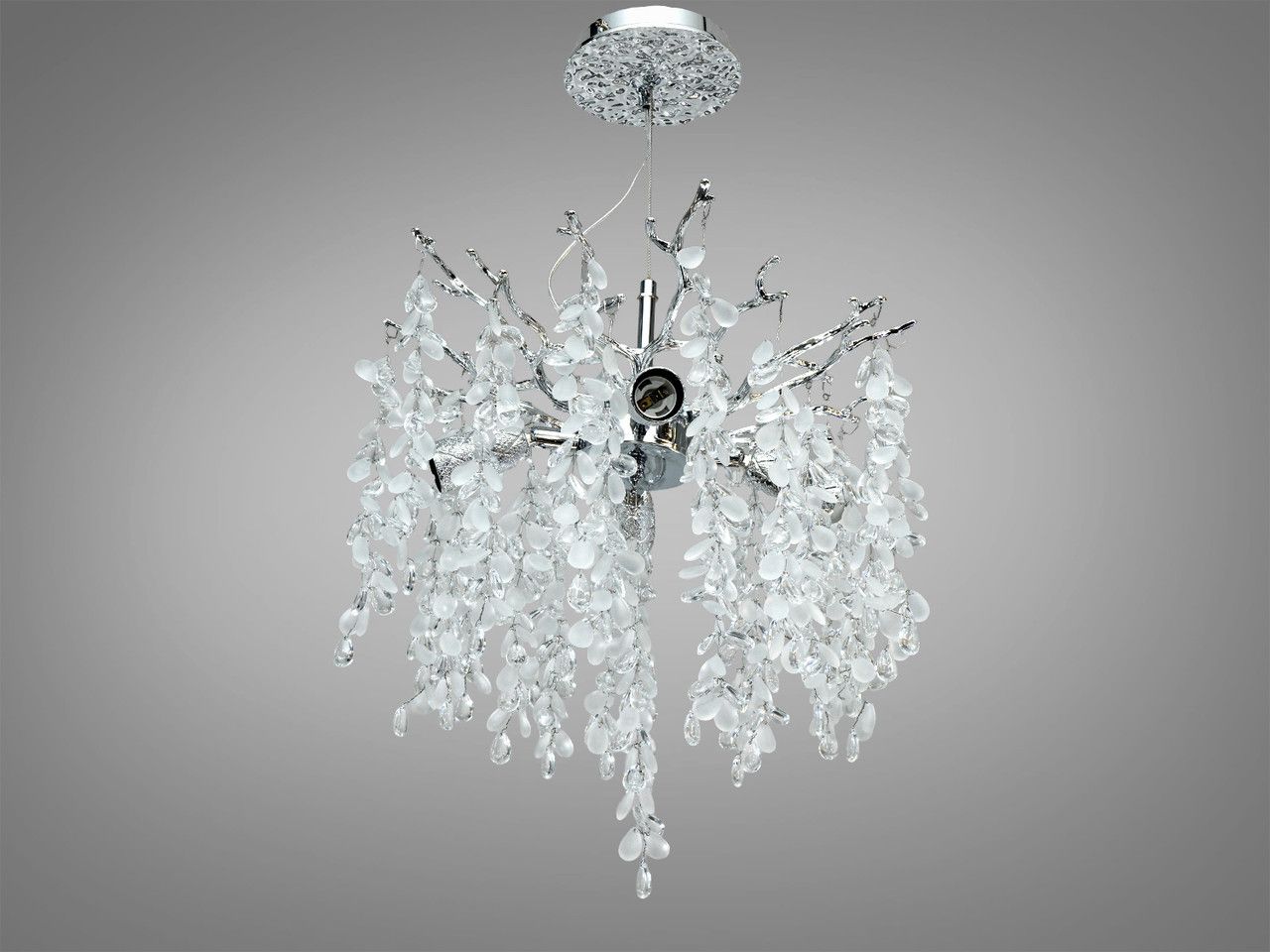 Изящный подвесной светильник, выполненный в стиле современной флористики. Модель имитирует переплетение зеркальных ветвей дерева, украшенных густым каскадом прозрачных хрустальных подвесок в форме капель. Благодаря зеркальному хромированному покрытию и игре света на гранях хрусталя, светильник создает эффект сияющих льдинок, добавляя интерьеру свежести, легкости и благородного блеска.