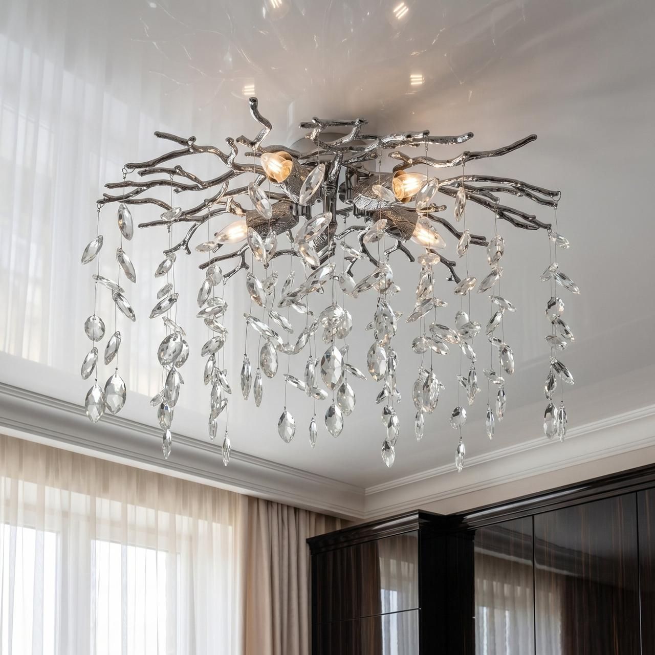 Потолочная люстра «Ветка» 5xE14 Chrome - Освещение для спальни и гостиной