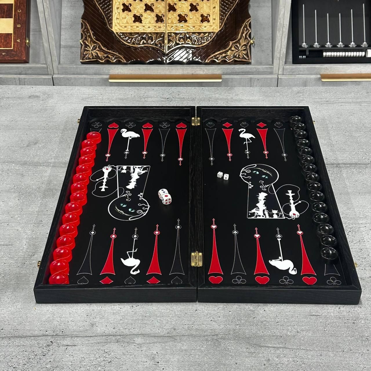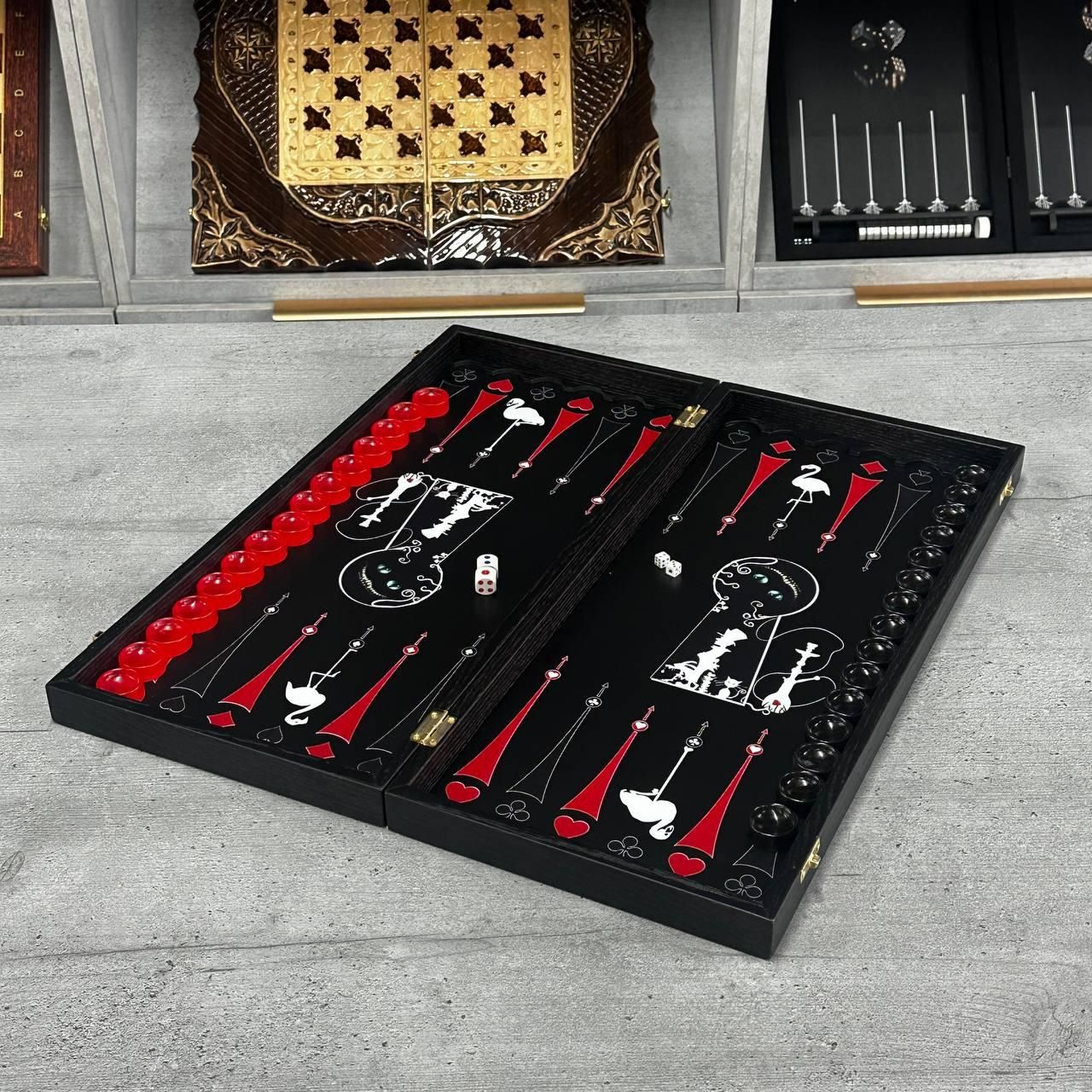 Нарды деревянные GrossMeister : Коллекционное издание Это не просто настольная игра – это инструмент для создания правильного впечатления и предмет искусства, подчеркивающий ваш вкус. Глубокая черная текстура корпуса в сочетании с премиальным убранством делает этот набор центральным элементом любого кабинета или гостиной. Почему стоит выбрать эту модель: Эффект "Вау" из первого прикосновения: Фишки из оптической ювелирной смолы имеют идеальный вес и прозрачность драгоценных камней. Игра ими – это чистое эстетическое наслаждение. Материалы, дышащие роскошью: Сочетание изящной древесины, МДФ High Density и многослойного защитного лака создает изделие, которое не потеряет своей красоты даже через 20 лет. Ограниченный тираж: Это коллекционная модель – обладайте эксклюзивом. Готовое решение для статусного подарка: Набор выглядит значительно дороже своей цены. Это беспроигрышный вариант, когда нужно поразить человека, у которого уже все есть Кому подойдет: Владельцу бизнеса или руководителю: как символ стратегического мышления и успеха. Эстетам и коллекционерам: которые ищут редкие вещи с идеальным исполнением. Юбиляру или близкому человеку: как памятный дар, который будет передаваться по наследству Технические характеристики: Материалы: Благородное дерево, МДФ высокой плотности, ювелирная смола Размер игрового поля: 460 х 520 мм (профессиональный формат). Фишки: 30 шт. (15 красных, 15 черных), диаметр 27 мм. Габариты: 52 х 23 х 5 см. Комплектация: Нарды, ювелирные фишки, игровые кубики (зары), фирменный чехол для аксессуаров Рекомендуем: Добавьте в заказ для максимального азарта и безопасной транспортировки вашего шедевра. КУПИТЬ СЕЙЧАС: На складе осталось всего несколько единиц этой модели. На те кнопку, чтобы успеть приобрести символ вашего статуса по выгодной цене!