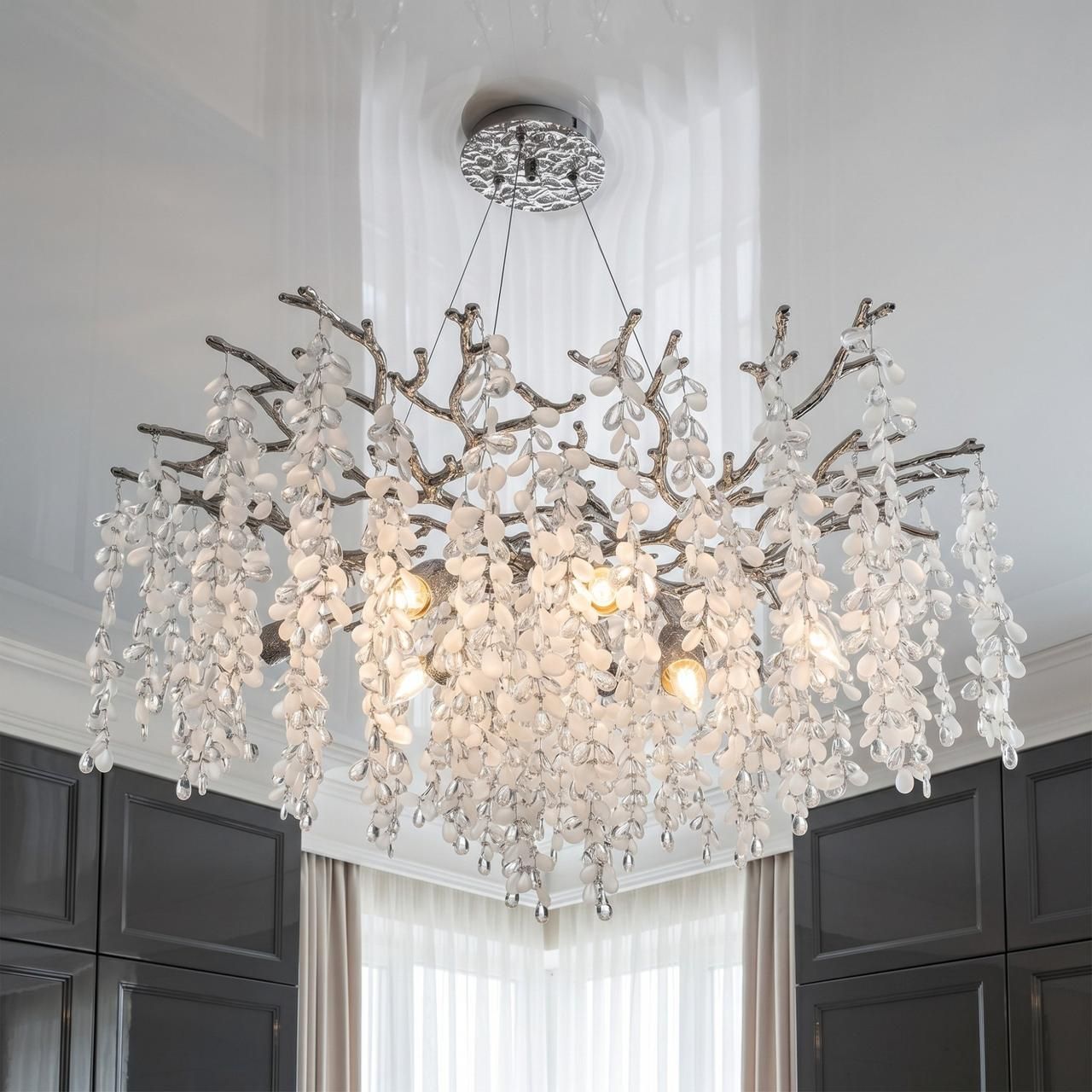 Подвесная интерьерная люстра Глициния 10xE14 - Хром - Хрусталь