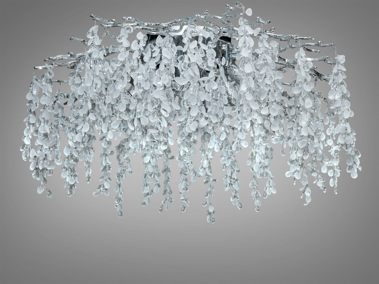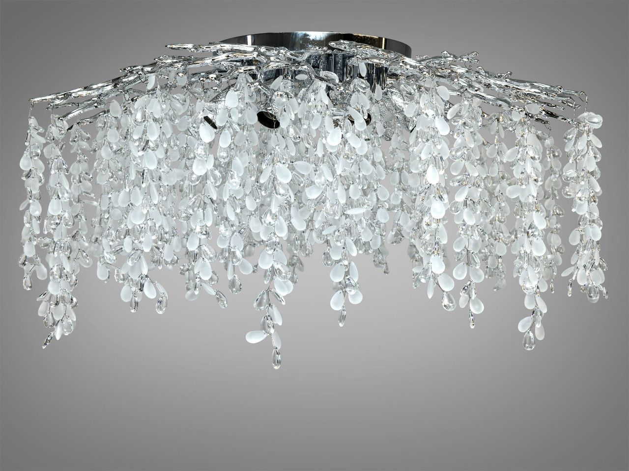 Современная потолочная люстра в стиле флористика, выполненная в цвете зеркальный хром. Модель представляет собой металлическое основание в форме переплетенных ветвей, декорированных каскадом подвесок из прозрачного хрусталя, имитирующих гроздья винограда. Благодаря девяти источникам света и значительному диаметру (80 см), люстра обеспечивает интенсивное основное освещение в просторных помещениях со стандартной высотой потолков.