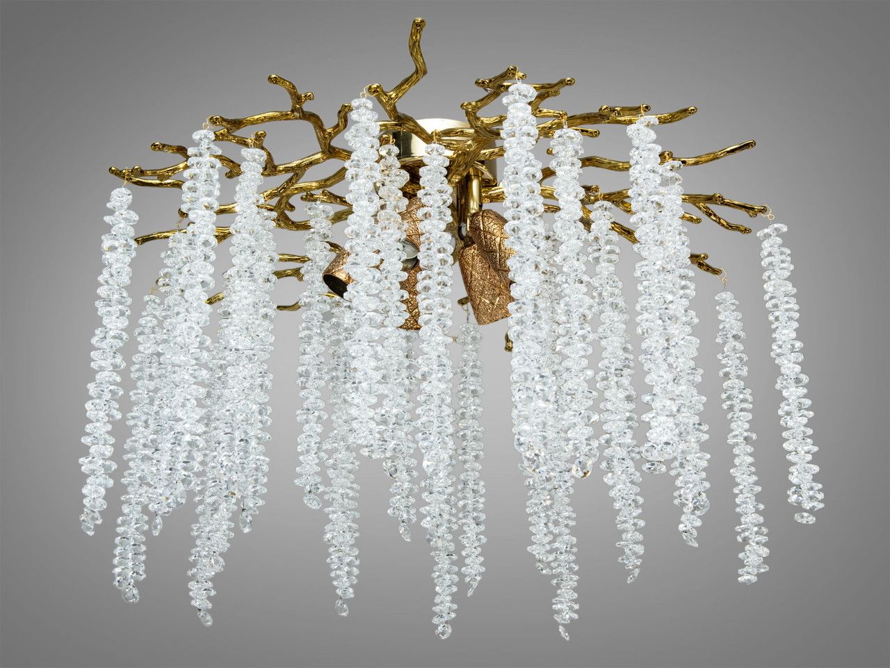Современная потолочная люстра в стиле флористика, выполненная в благородном цвете античной бронзы. Модель представляет собой металлическое основание в форме переплетенных ветвей, декорированных каскадом подвесок из прозрачного хрусталя. Благодаря пяти источникам света и компактной высоте (32 см), люстра обеспечивает эффективное основное освещение в помещениях со стандартными потолками, сочетая в себе функциональность и актуальный декоративный дизайн.
