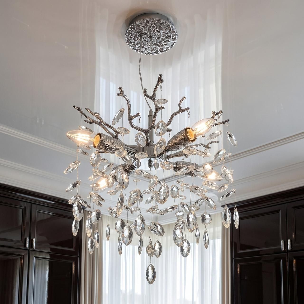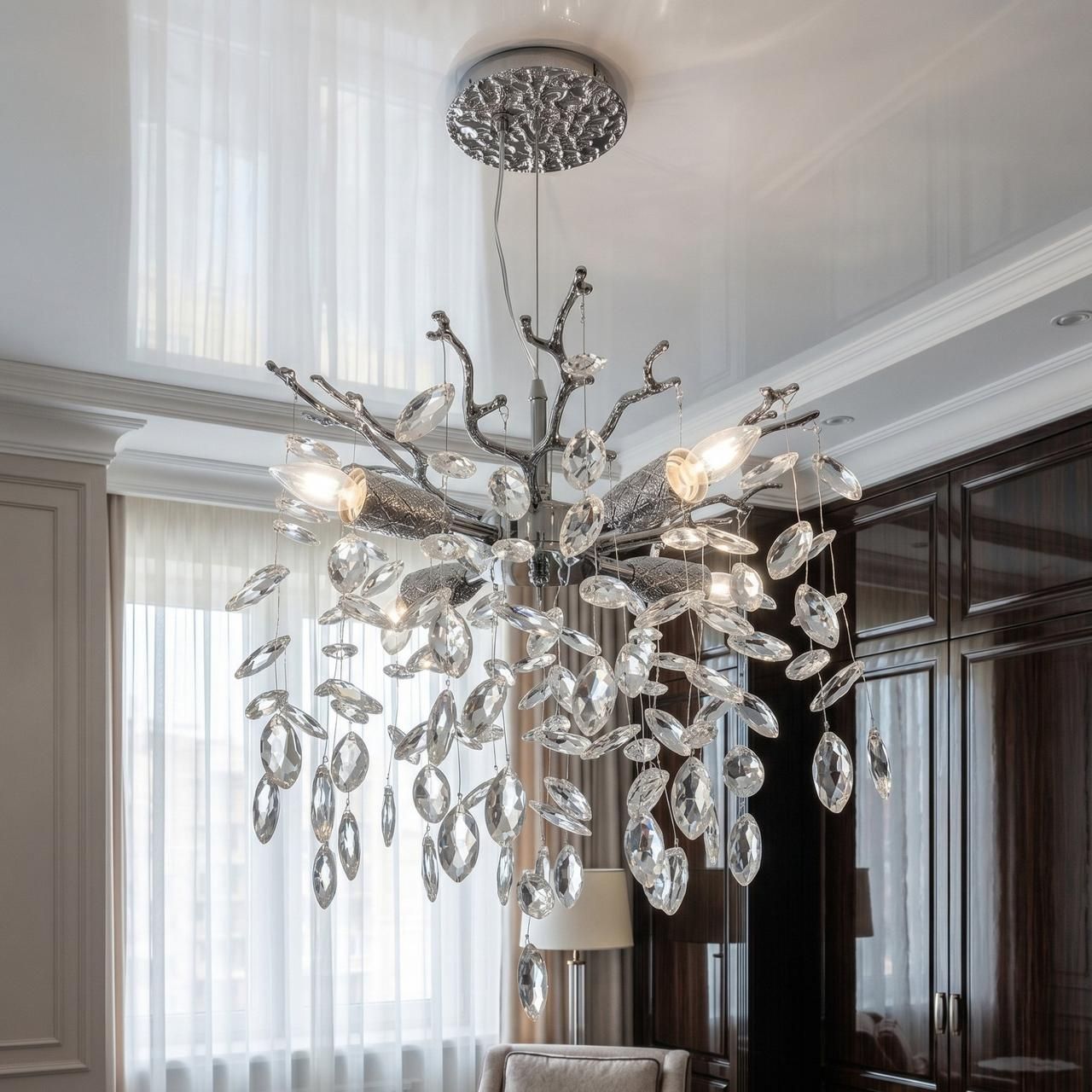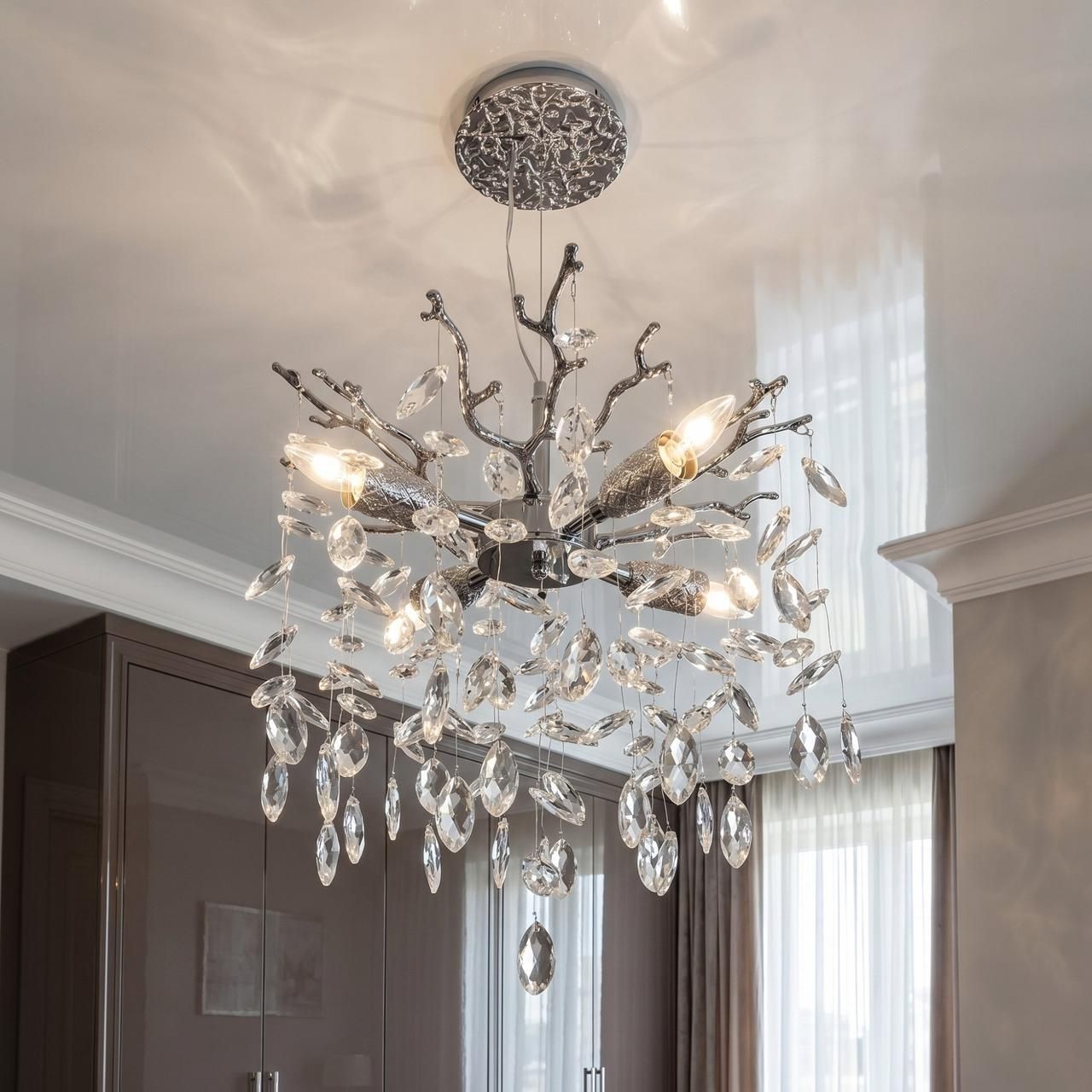 Подвесная хрустальная люстра «Ветка» 4xE14 Chrome - Освещение для спальни