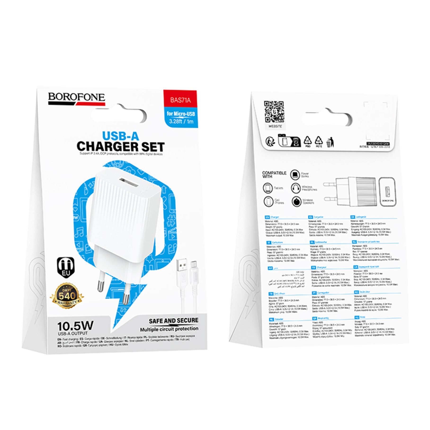 Сетевое зарядное устройство Borofone BAS71A с кабелем USB — MicroUSB — это практичное и надёжное решение для повседневной зарядки смартфонов, наушников, повербанков и других портативных устройств. Модель сочетает компактный форм-фактор, стабильную подачу питания и готовую комплектацию с кабелем, обеспечивая удобство использования в любых условиях.