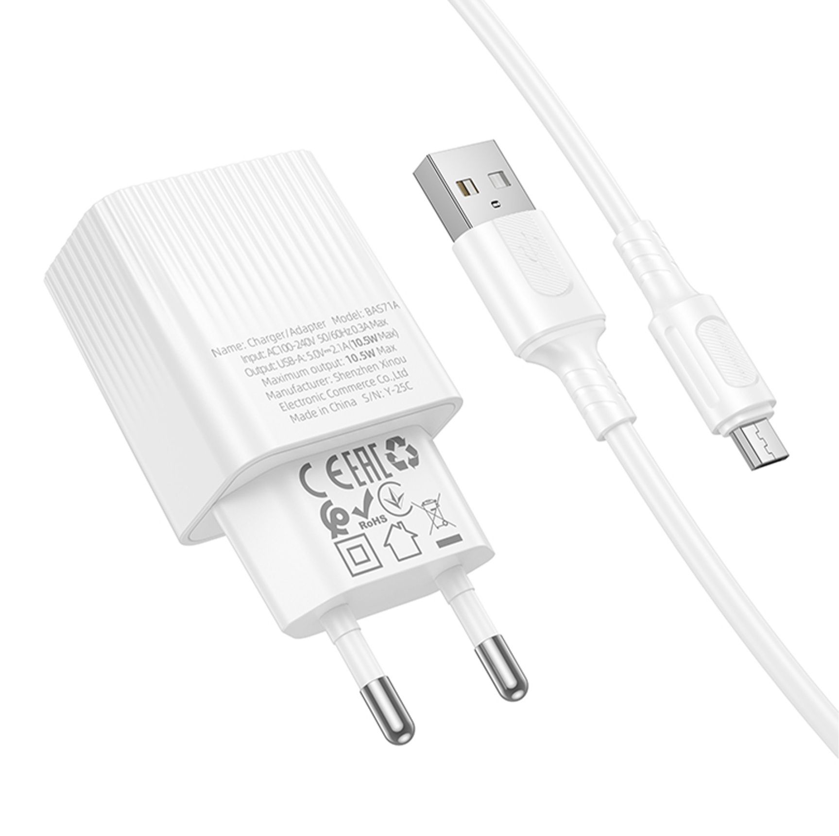 Сетевое Зарядное Устройство Borofone BAS71A 1USB 2.1A+USB to Micro Белый