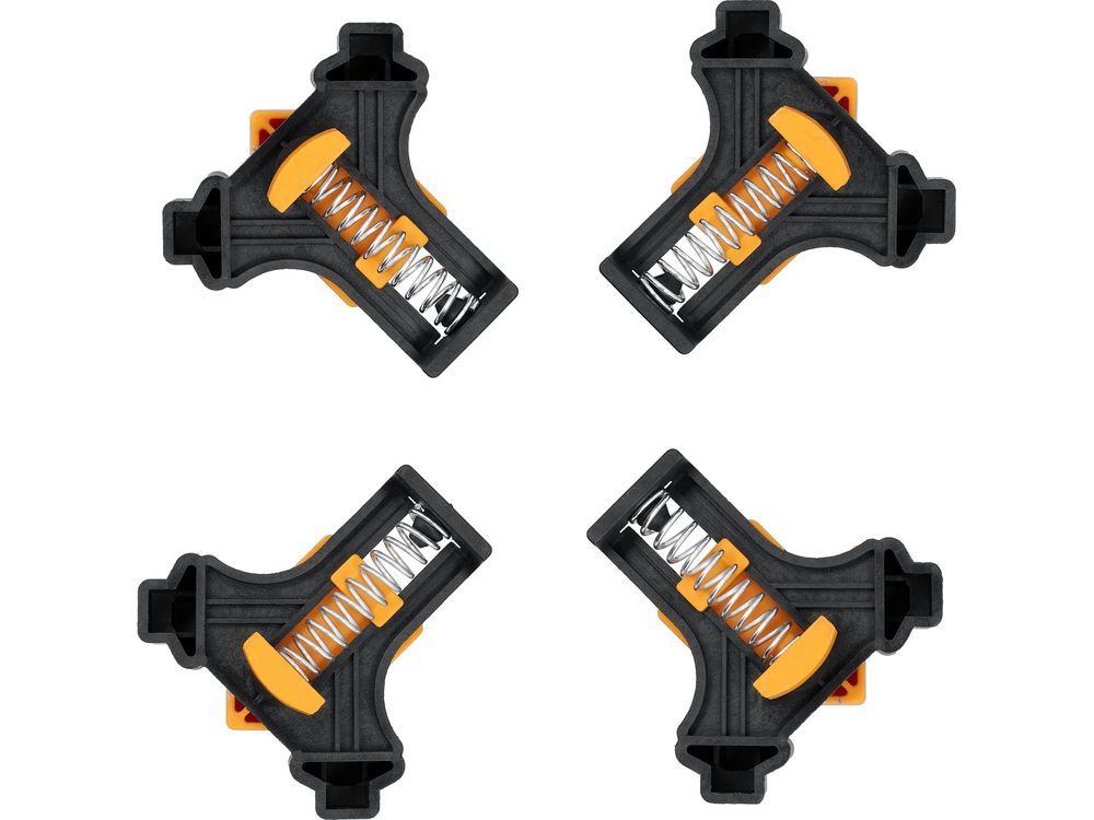 Комплект пружинных угловых зажимов – это практичное дополнение к любой столярной и сборочной мастерской, предназначенное для быстрого соединения элементов под углом 90°.