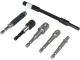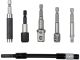 - Шестигранные адаптеры позволяют использовать стандартные отверточные головки; каждый адаптер оснащен шариком-фиксатором, который стабилизирует головку и предотвращает ее случайное соскальзывание во время работы.