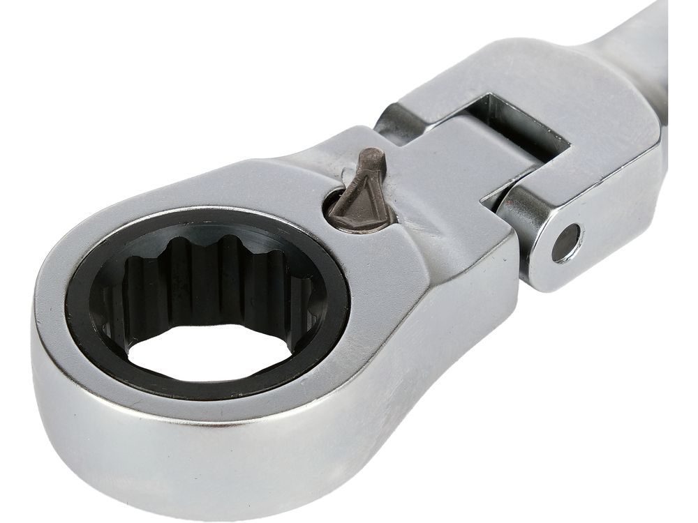 Его компактная конструкция и подвижная головка позволяют разместить ключ под удобным углом, что облегчает работу в тесных моторных отсеках, технических установках и сборке механических компонентов.