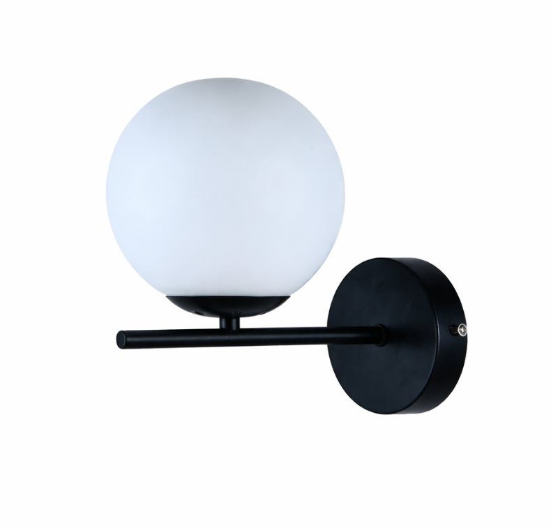 Бра настенное VALESO 513-1, 1 плафон, металл + стекло, чёрный, E27, 60W