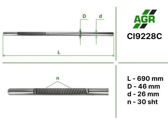 Шток рулевой рейки УР, новый, Citroen Jumpy, Peugeot Expert, AGR (CI9228C)