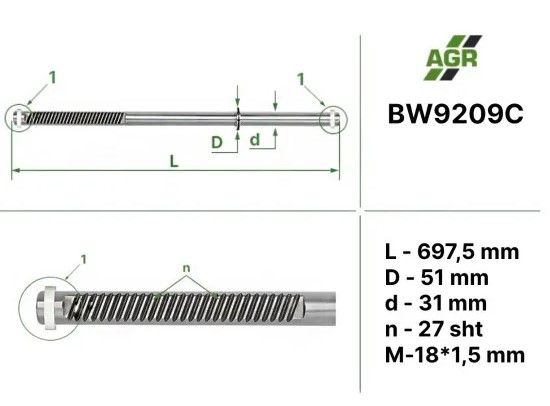 Шток рулевой рейки УР, новый, BMW 7 (E65) 2001-2008, AGR (BW9209C)