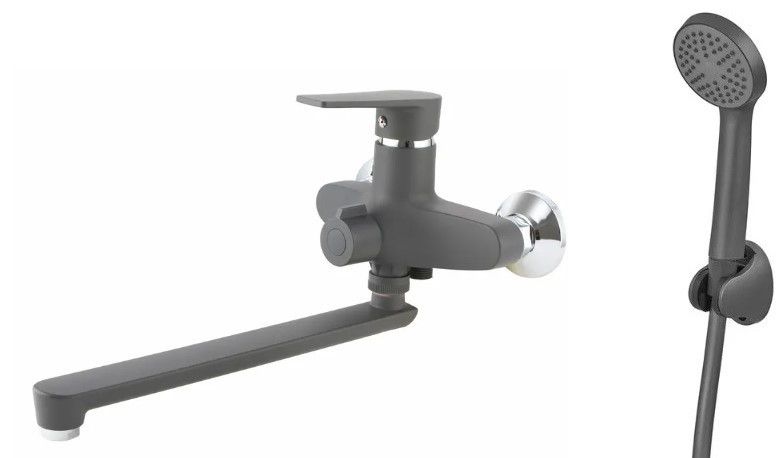 Тип излива: Длинный поворотный (360 мм), что удобно для использования как в ванной, так и в умывальнике рядом.